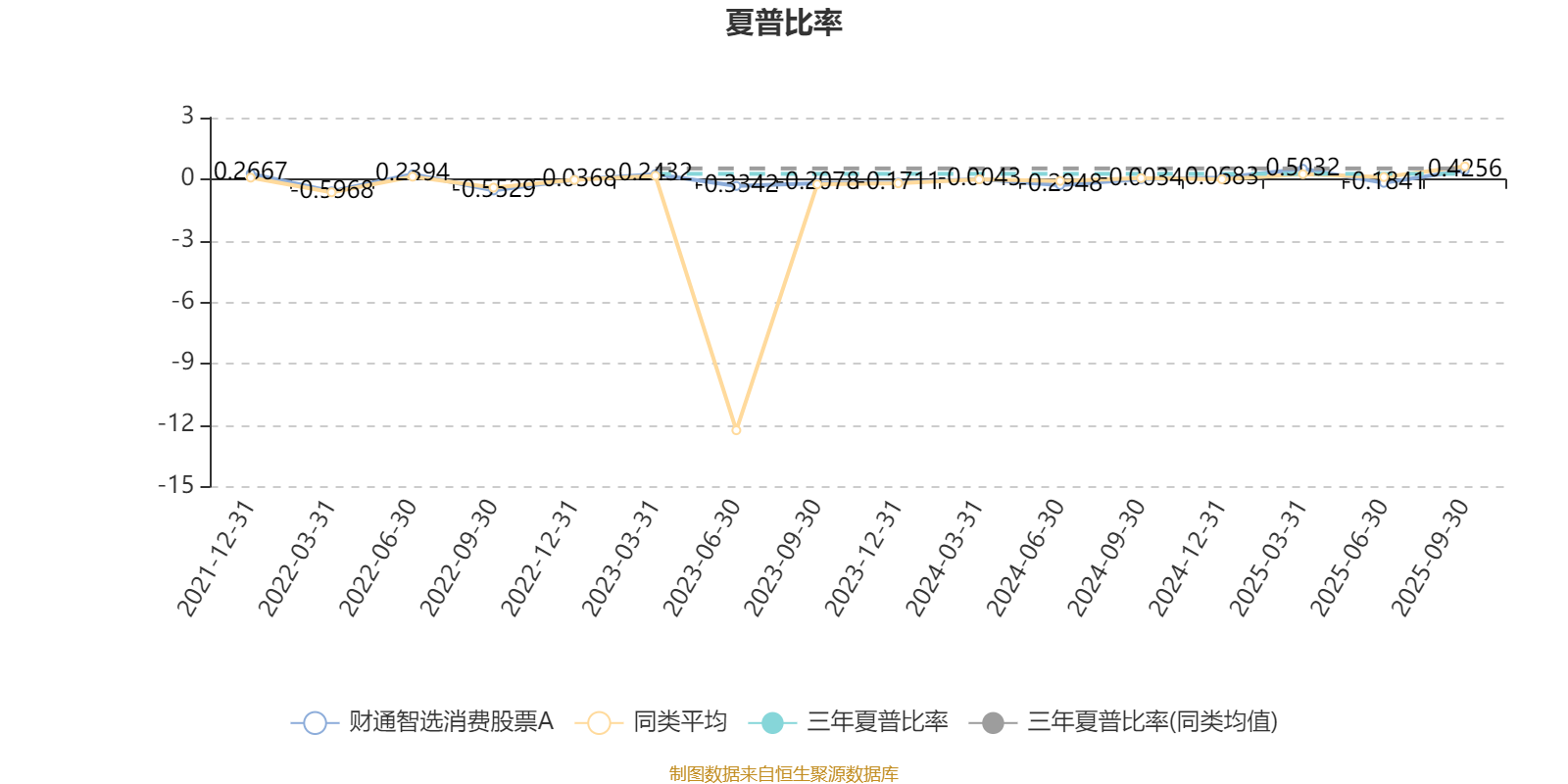 截至9月30日,基金近三年夏普比率为0.2583,位于同类可比基金68/85。