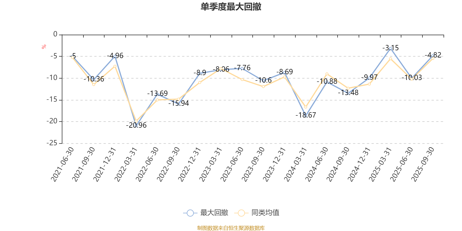 截至10月27日,基金近三年最大回撤为34.32%,同类可比基金排名42/87。单季度最大回撤出现在2022年一季度,为20.96%。
