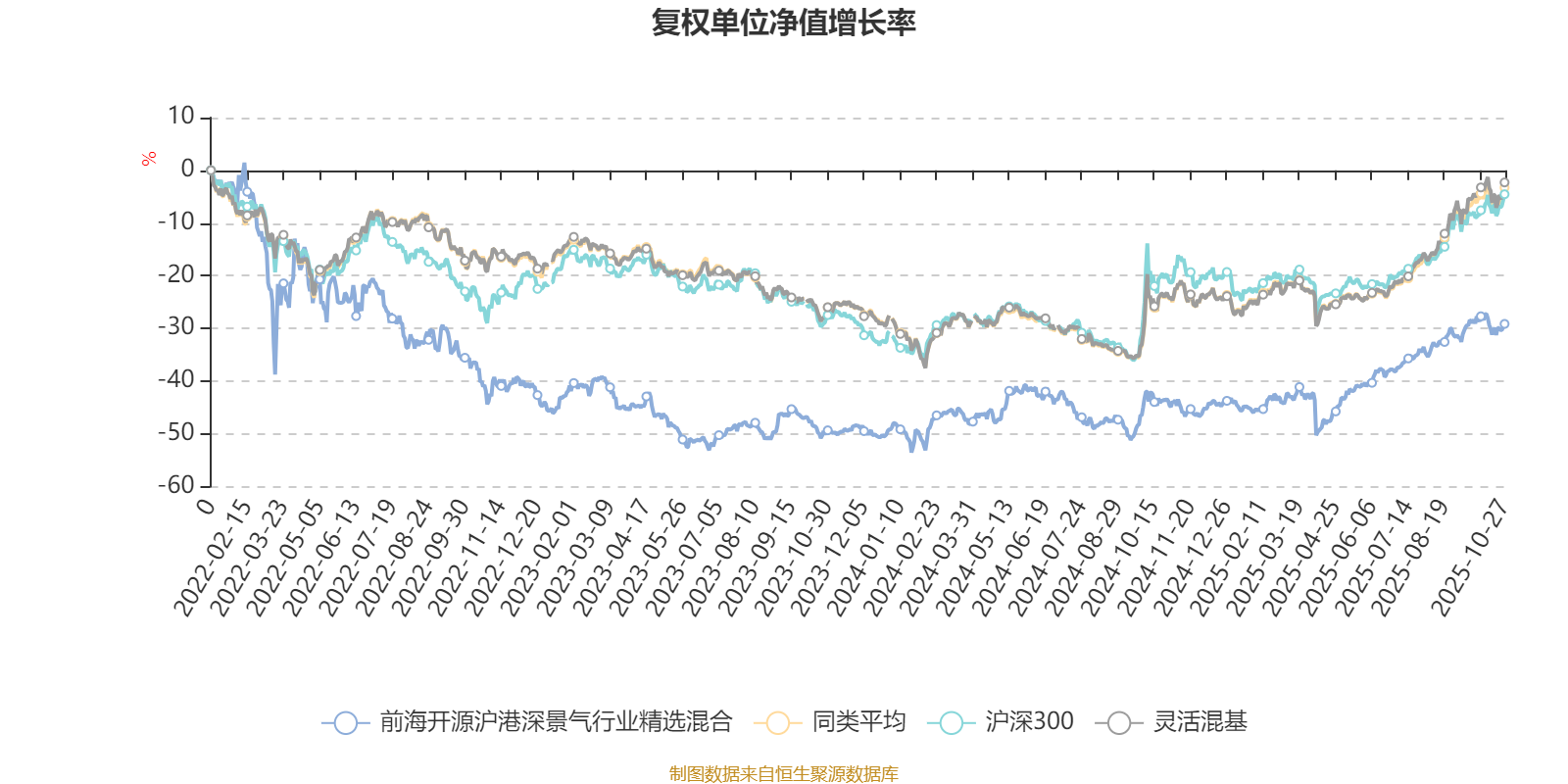 截至10月27日,前海开源沪港深景气行业精选混合近三个月复权单位净值增长率为8.04%,位于同类可比基金825/1287;近半年复权单位净值增长率为30.58%,位于同类可比基金472/1287;近一年复权单位净值增长率为25.74%,位于同类可比基金547/1287;近三年复权单位净值增长率为19.60%,位于同类可比基金533/1286。