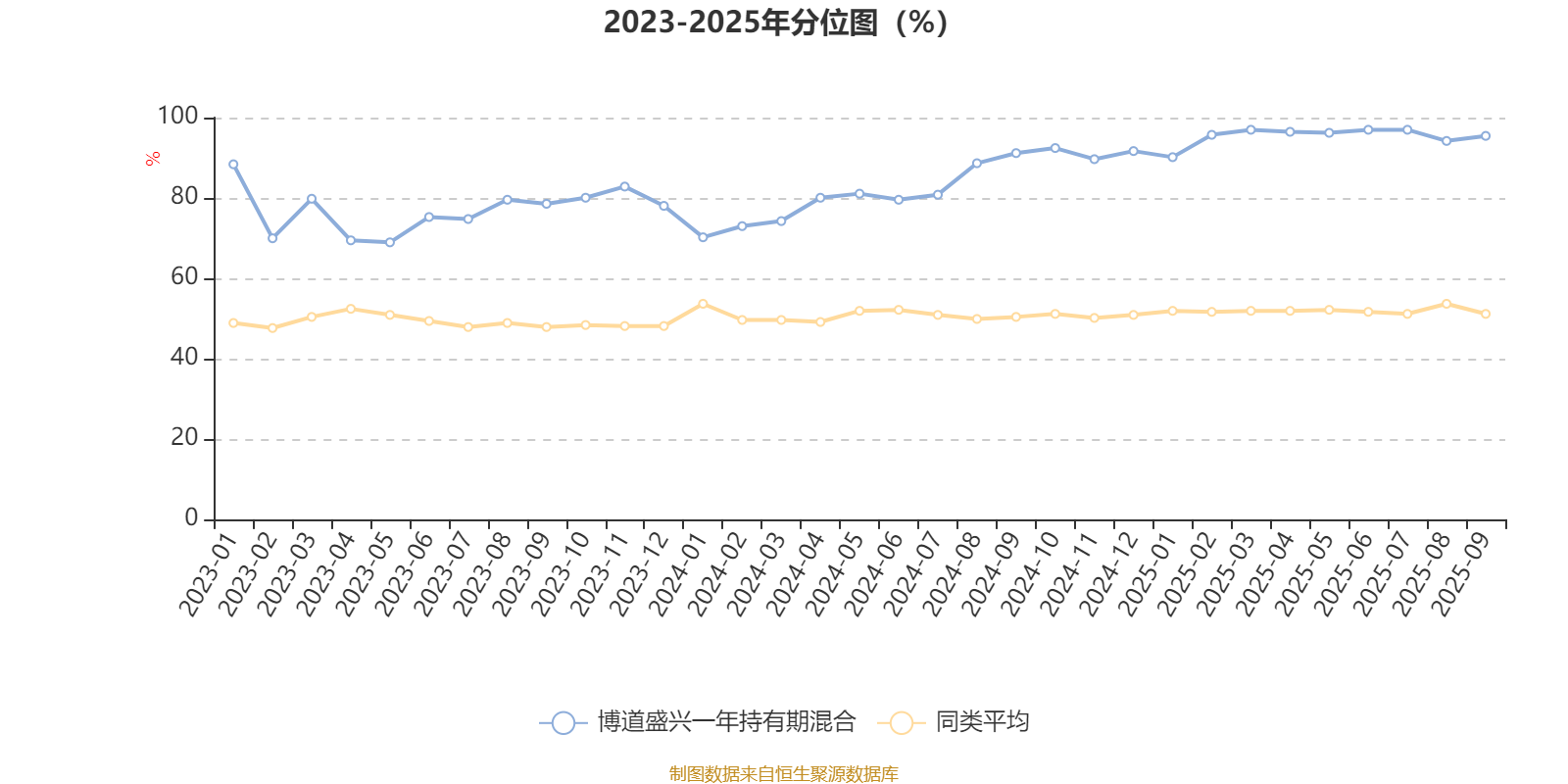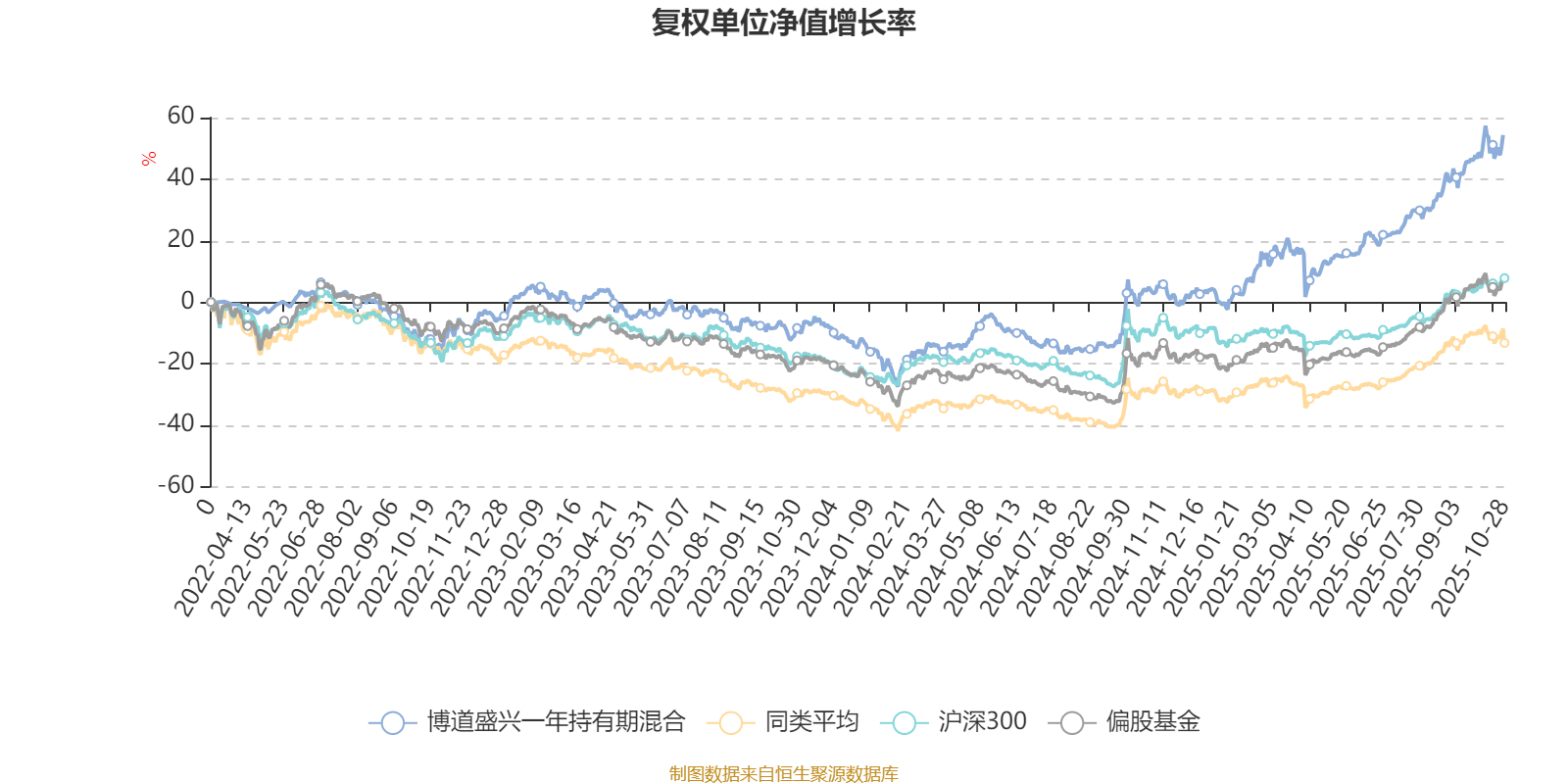 截至10月27日,博道盛兴一年持有期混合近三个月复权单位净值增长率为19.07%,位于同类可比基金233/689;近半年复权单位净值增长率为36.24%,位于同类可比基金218/688;近一年复权单位净值增长率为48.57%,位于同类可比基金93/653;近三年复权单位净值增长率为79.19%,位于同类可比基金7/364。