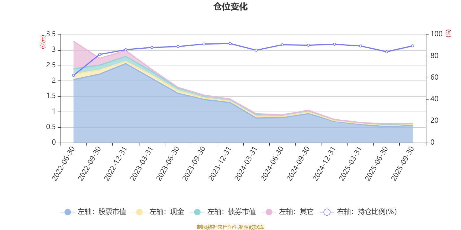 据定期报告数据统计,近三年平均股票仓位为88.82%,同类平均为83.73%。2023年末基金达到91.65%的最高仓位,2022年上半年末最低,为62.21%。