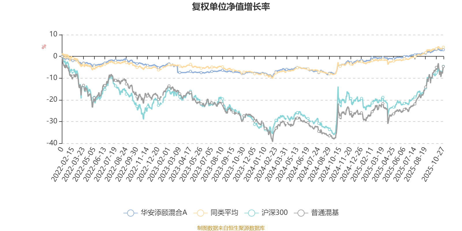 截至10月27日,华安添颐混合A近三个月复权单位净值增长率为1.96%,位于同类可比基金367/629;近半年复权单位净值增长率为4.26%,位于同类可比基金401/629;近一年复权单位净值增长率为7.00%,位于同类可比基金312/623;近三年复权单位净值增长率为6.82%,位于同类可比基金427/557。