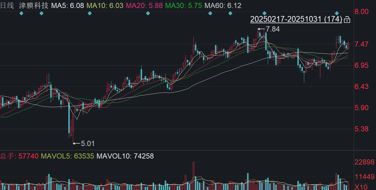 二级市场上,截至31日收盘,津膜科技上涨1.90%报7.50元/股,总市值约22.65亿元,今年来公司股价累计上涨近三成。
