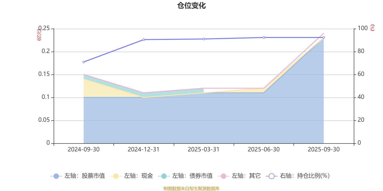 据定期报告数据统计,成立以来平均股票仓位为87.39%,同类平均为83.73%。2025年三季度末基金达到92.31%的最高仓位,2024年三季度末最低,为70.92%。