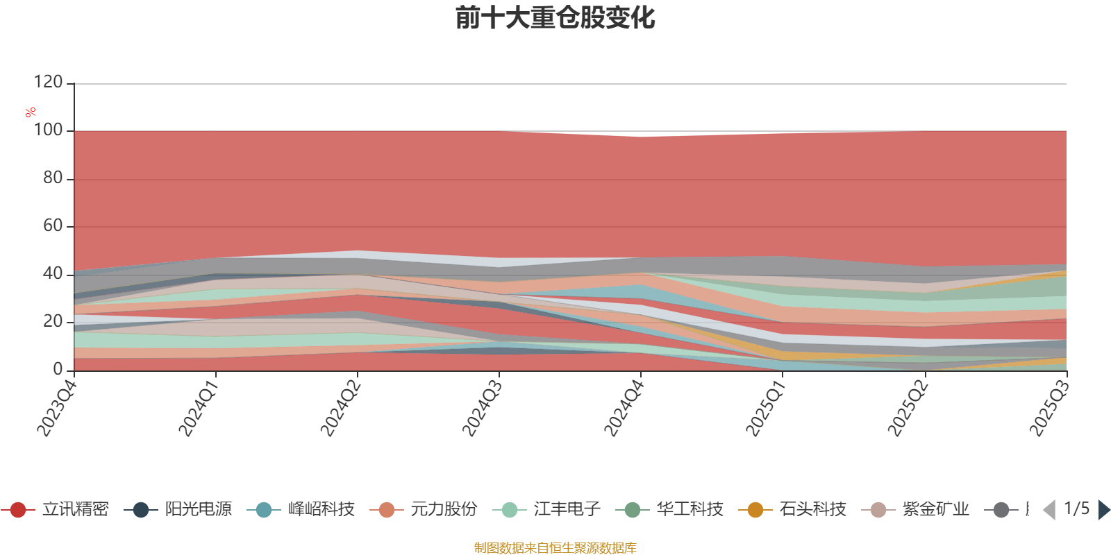 截至2025年三季度末,基金十大重仓股分别是中芯国际、亿纬锂能、阿里巴巴-W、三花智控、恒瑞医药、银轮股份、华工科技、石头科技、双环传动、欣旺达。