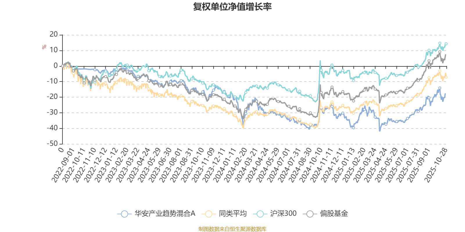 截至10月27日,华安产业趋势混合A近三个月复权单位净值增长率为14.60%,位于同类可比基金321/621;近半年复权单位净值增长率为30.40%,位于同类可比基金292/619;近一年复权单位净值增长率为12.35%,位于同类可比基金525/611;近三年复权单位净值增长率为-15.97%,位于同类可比基金492/518。