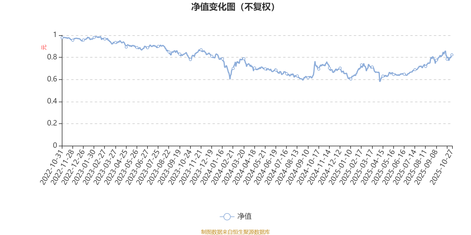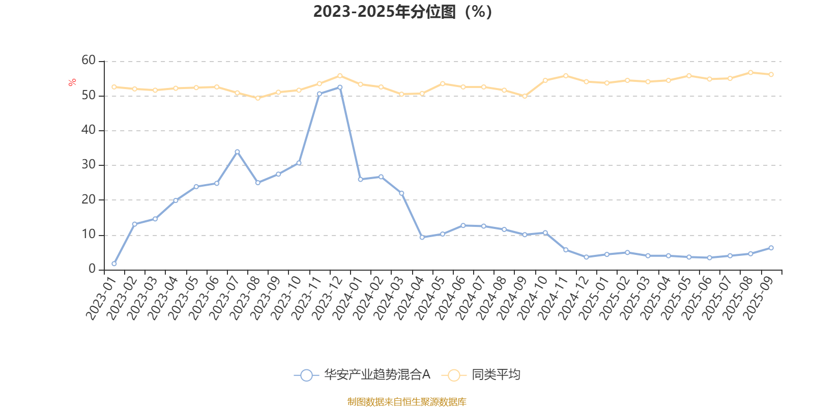 通过所选区间该基金净值增长率分位图,可以观察该基金与同类基金业绩比较情况。图为坐标原点到区间内某时点的净值增长率在同类基金中的分位数。
