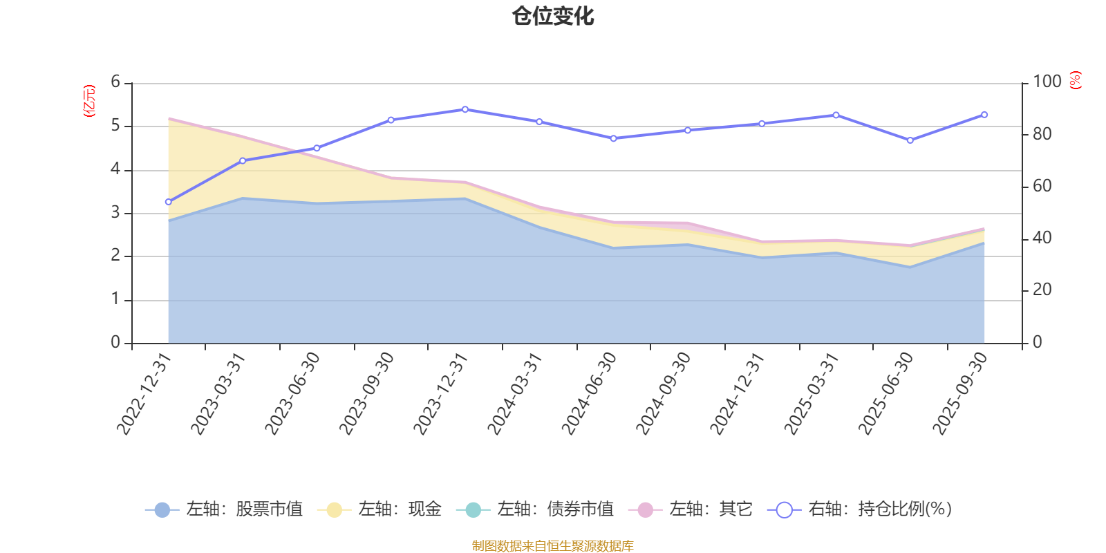 据定期报告数据统计,近三年平均股票仓位为79.87%,同类平均为85.66%。2023年末基金达到89.85%的最高仓位,2022年末最低,为54.32%。