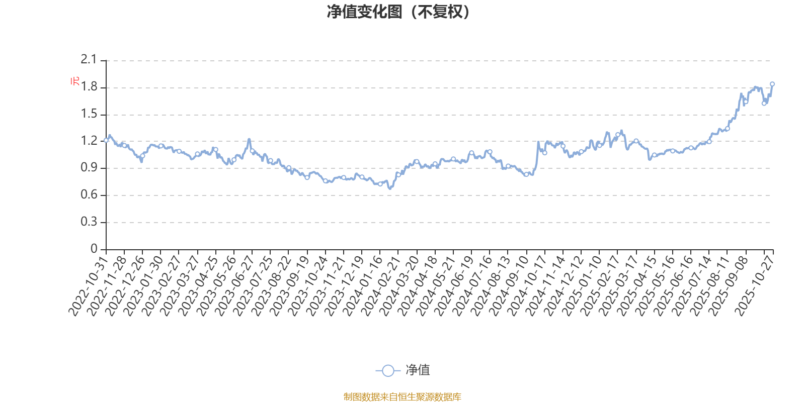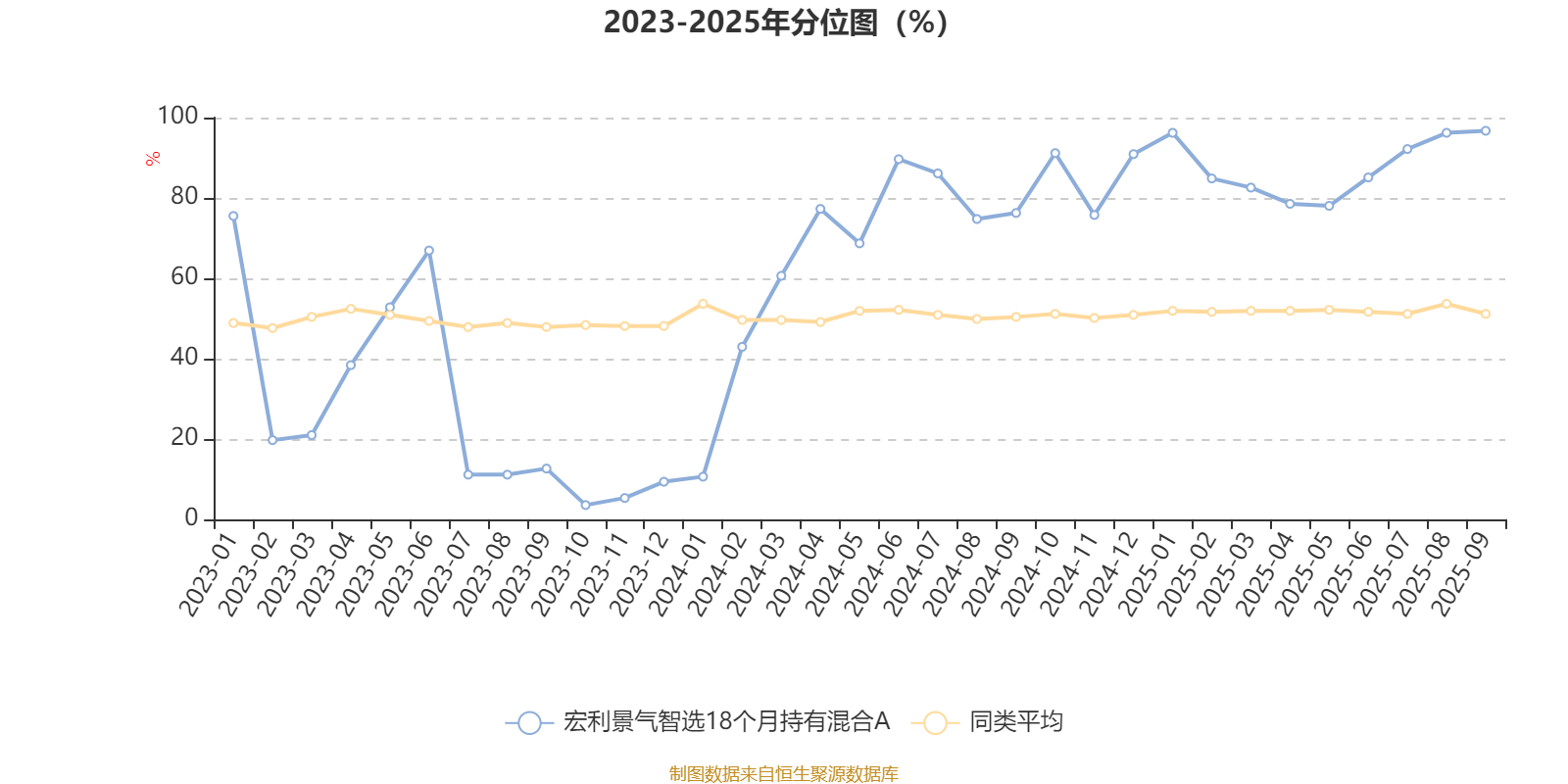 通过所选区间该基金净值增长率分位图,可以观察该基金与同类基金业绩比较情况。图为坐标原点到区间内某时点的净值增长率在同类基金中的分位数。