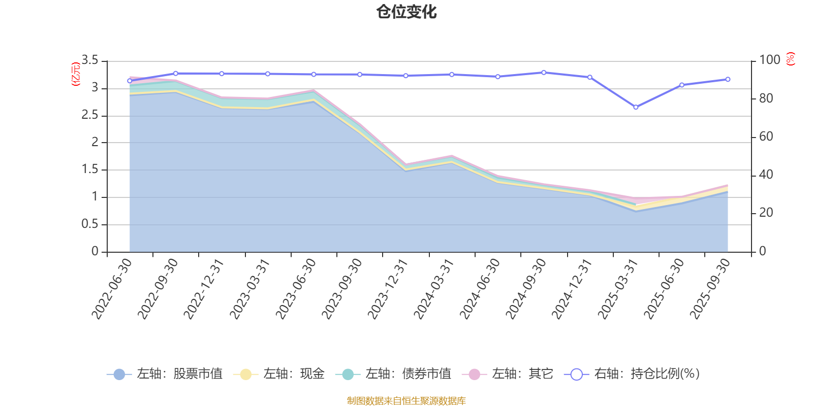 据定期报告数据统计,近三年平均股票仓位为90.69%,同类平均为83.73%。2024年三季度末基金达到93.93%的最高仓位,2025年一季度末最低,为75.8%。