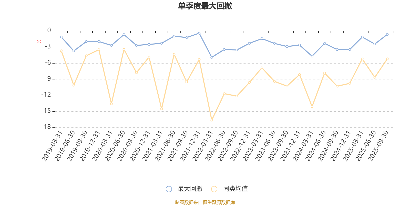 截至10月27日,基金近三年最大回撤为5.43%,同类可比基金排名85/1274。单季度最大回撤出现在2022年一季度,为4.96%。