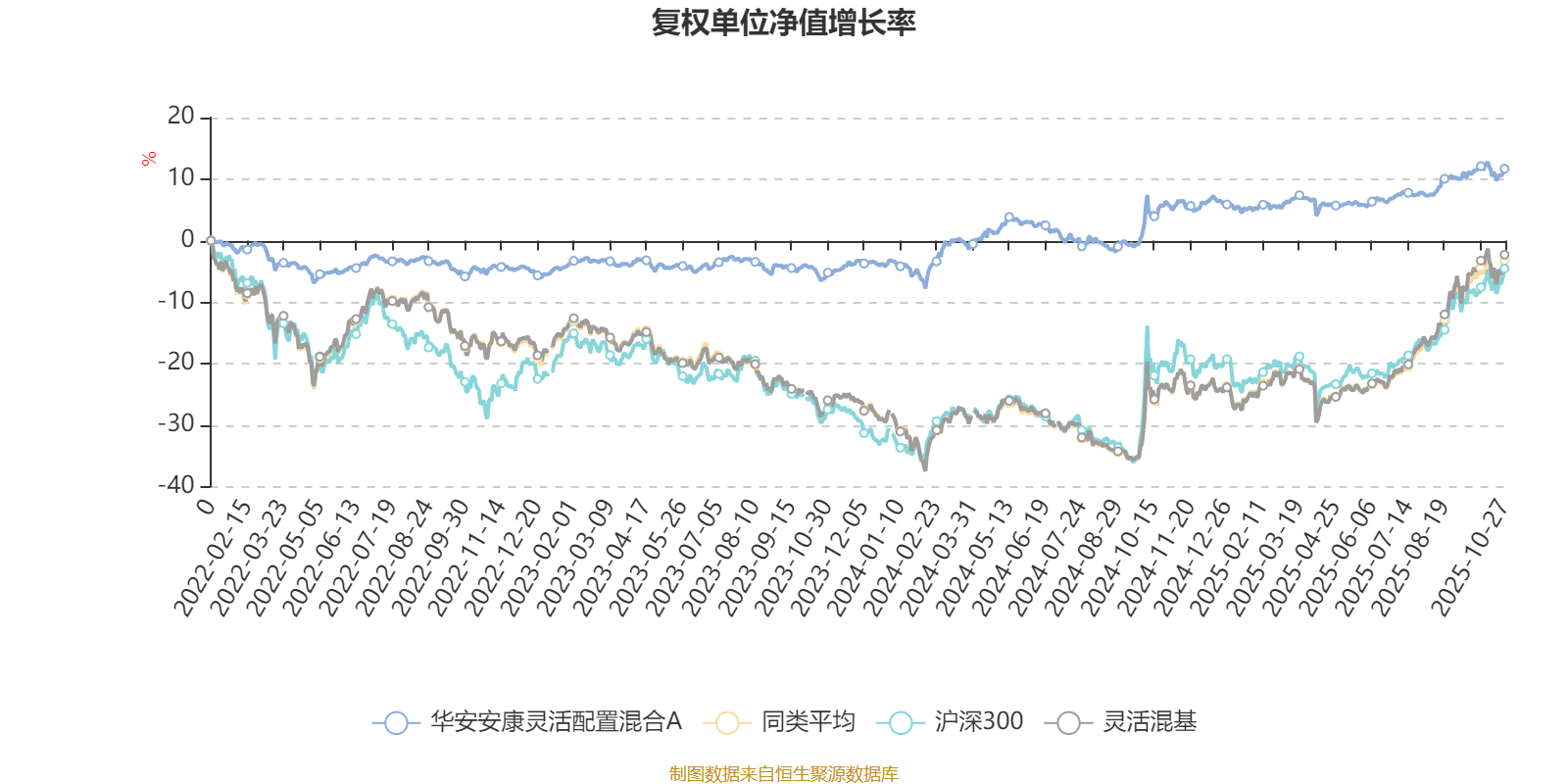 截至10月27日,华安安康灵活配置混合A近三个月复权单位净值增长率为3.66%,位于同类可比基金1007/1287;近半年复权单位净值增长率为5.65%,位于同类可比基金1125/1287;近一年复权单位净值增长率为5.10%,位于同类可比基金1132/1287;近三年复权单位净值增长率为17.16%,位于同类可比基金585/1286。