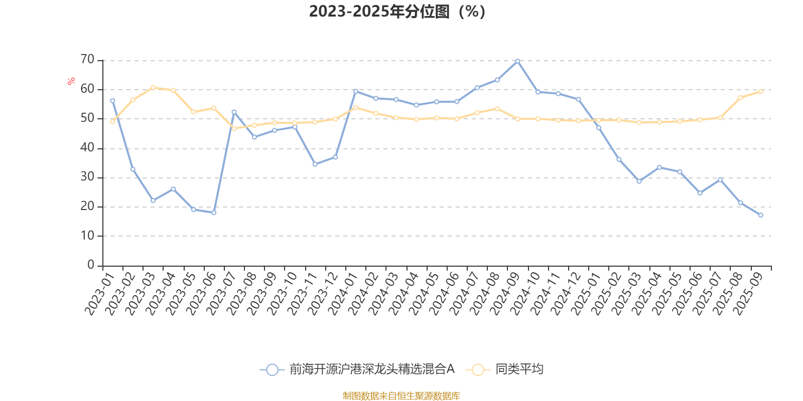 通过所选区间该基金净值增长率分位图,可以观察该基金与同类基金业绩比较情况。图为坐标原点到区间内某时点的净值增长率在同类基金中的分位数。