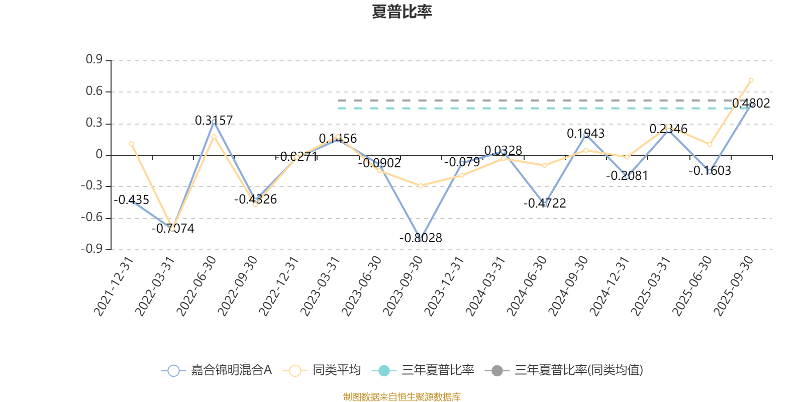 截至9月30日,基金近三年夏普比率为0.4428,位于同类可比基金309/518。