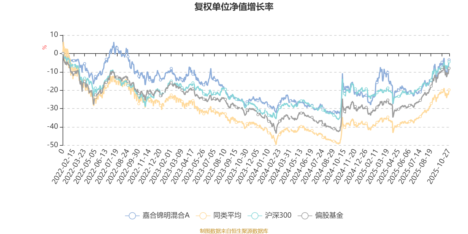 截至10月27日,嘉合锦明混合A近三个月复权单位净值增长率为15.62%,位于同类可比基金299/621;近半年复权单位净值增长率为20.66%,位于同类可比基金467/619;近一年复权单位净值增长率为17.19%,位于同类可比基金463/611;近三年复权单位净值增长率为11.73%,位于同类可比基金294/518。
