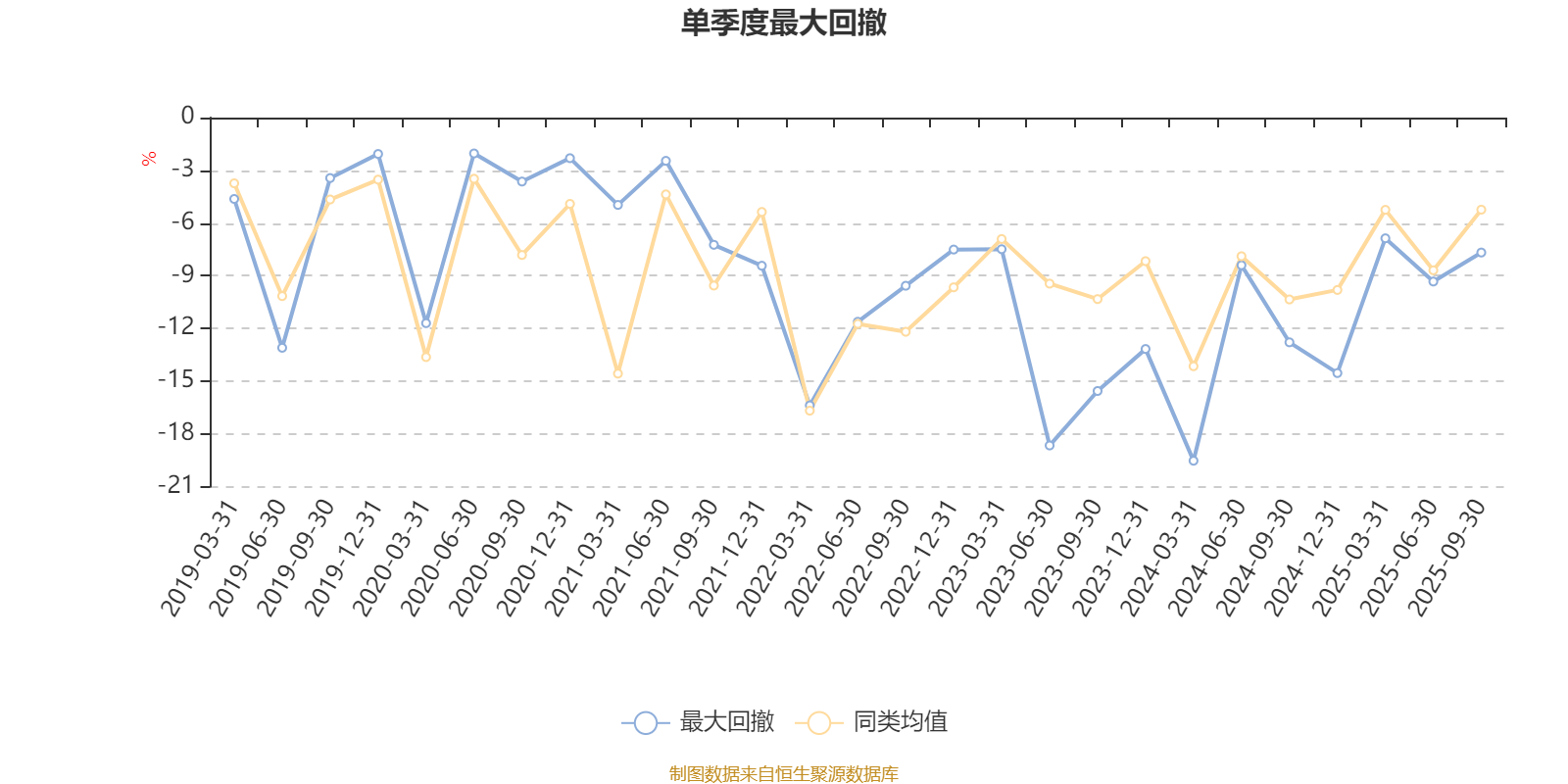 截至10月27日,基金近三年最大回撤为39.5%,同类可比基金排名886/1274。单季度最大回撤出现在2024年一季度,为19.53%。