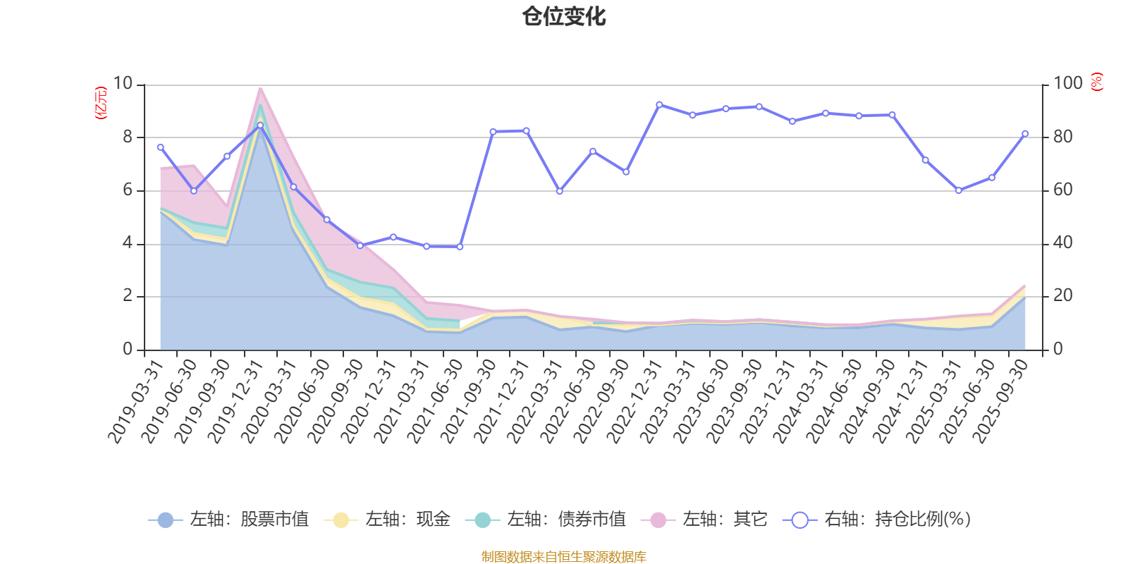 据定期报告数据统计,近三年平均股票仓位为82.83%,同类平均为72.35%。2022年末基金达到92.43%的最高仓位,2021年上半年末最低,为38.9%。