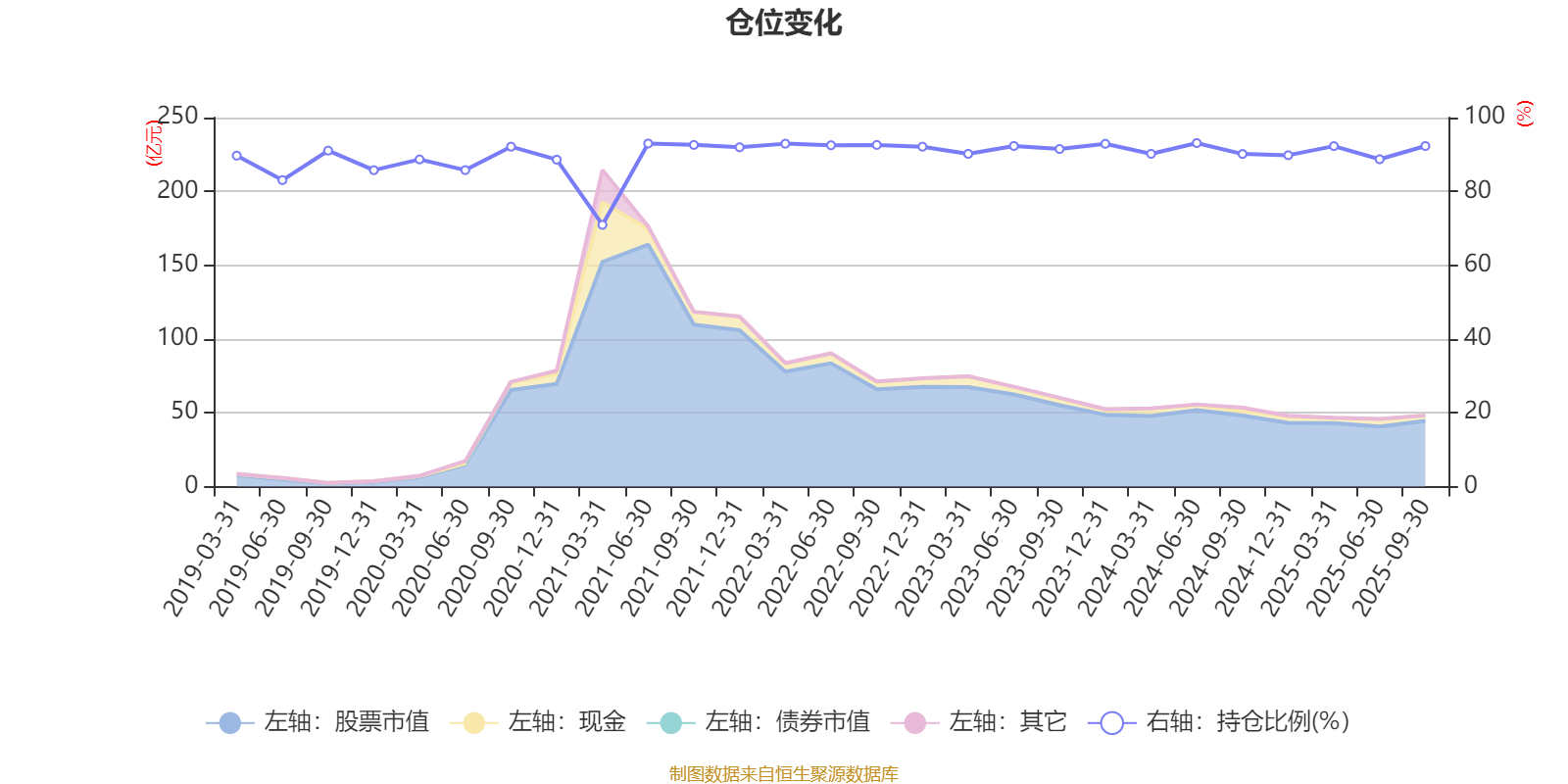 据定期报告数据统计,近三年平均股票仓位为91.29%,同类平均为72.35%。2024年上半年末基金达到93.1%的最高仓位,2021年一季度末最低,为70.93%。