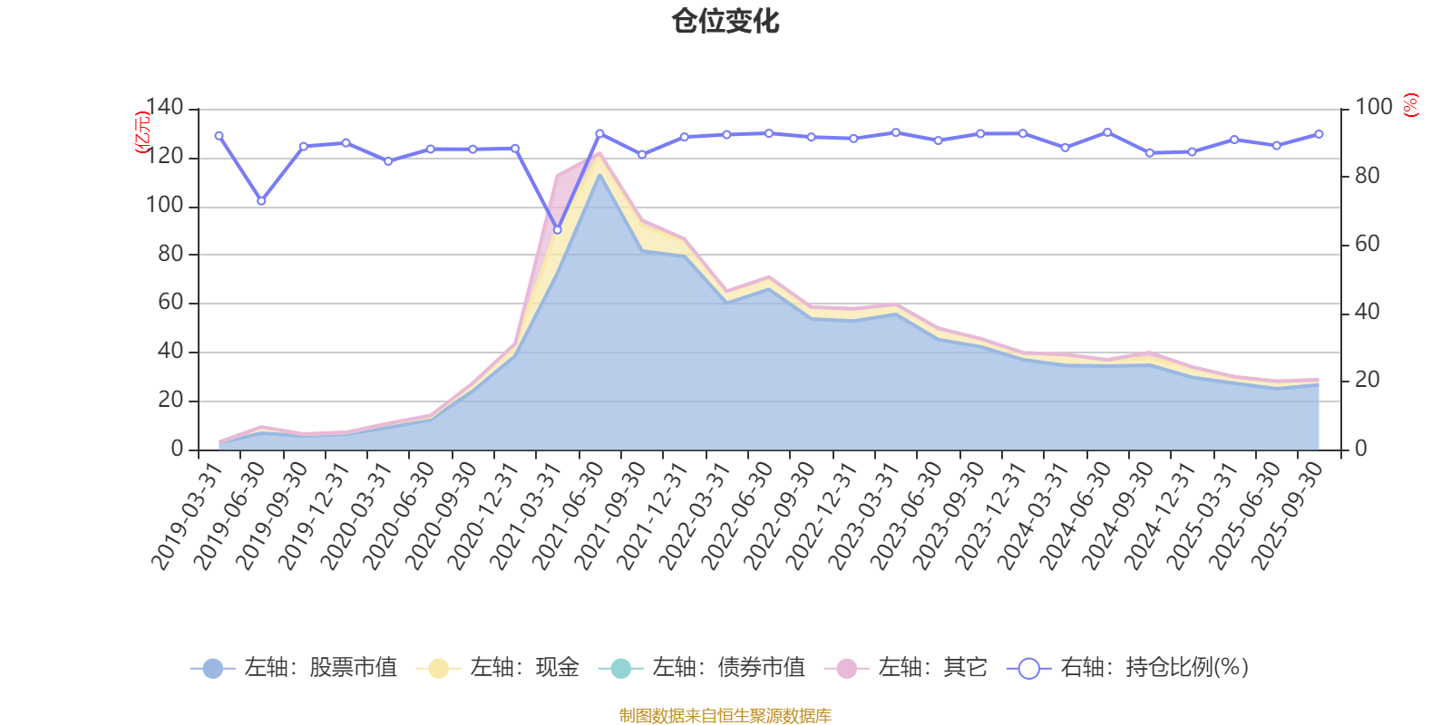 据定期报告数据统计,近三年平均股票仓位为90.78%,同类平均为72.35%。2024年上半年末基金达到93.11%的最高仓位,2021年一季度末最低,为64.49%。