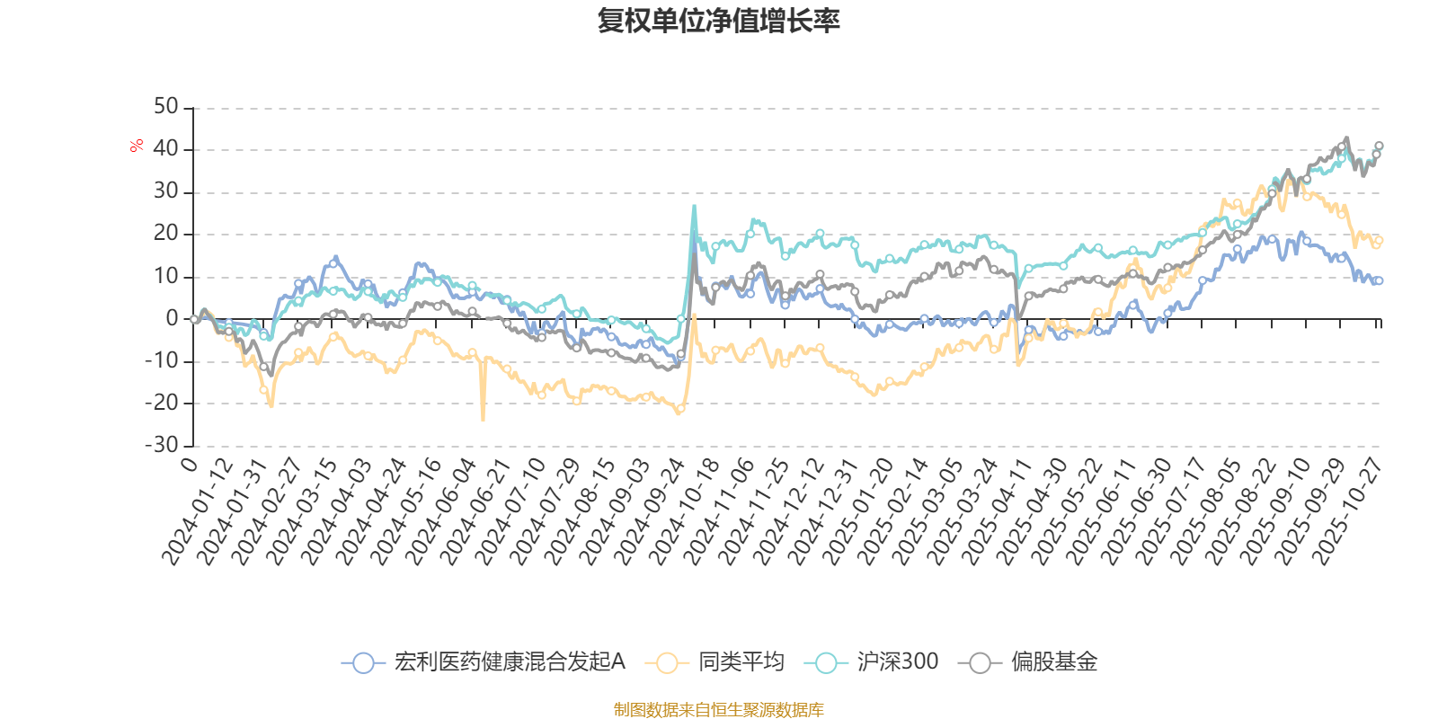 截至10月27日,宏利医药健康混合发起A近三个月复权单位净值增长率为-2.19%,位于同类可比基金50/106;近半年复权单位净值增长率为13.46%,位于同类可比基金92/104;近一年复权单位净值增长率为0.65%,位于同类可比基金96/101。