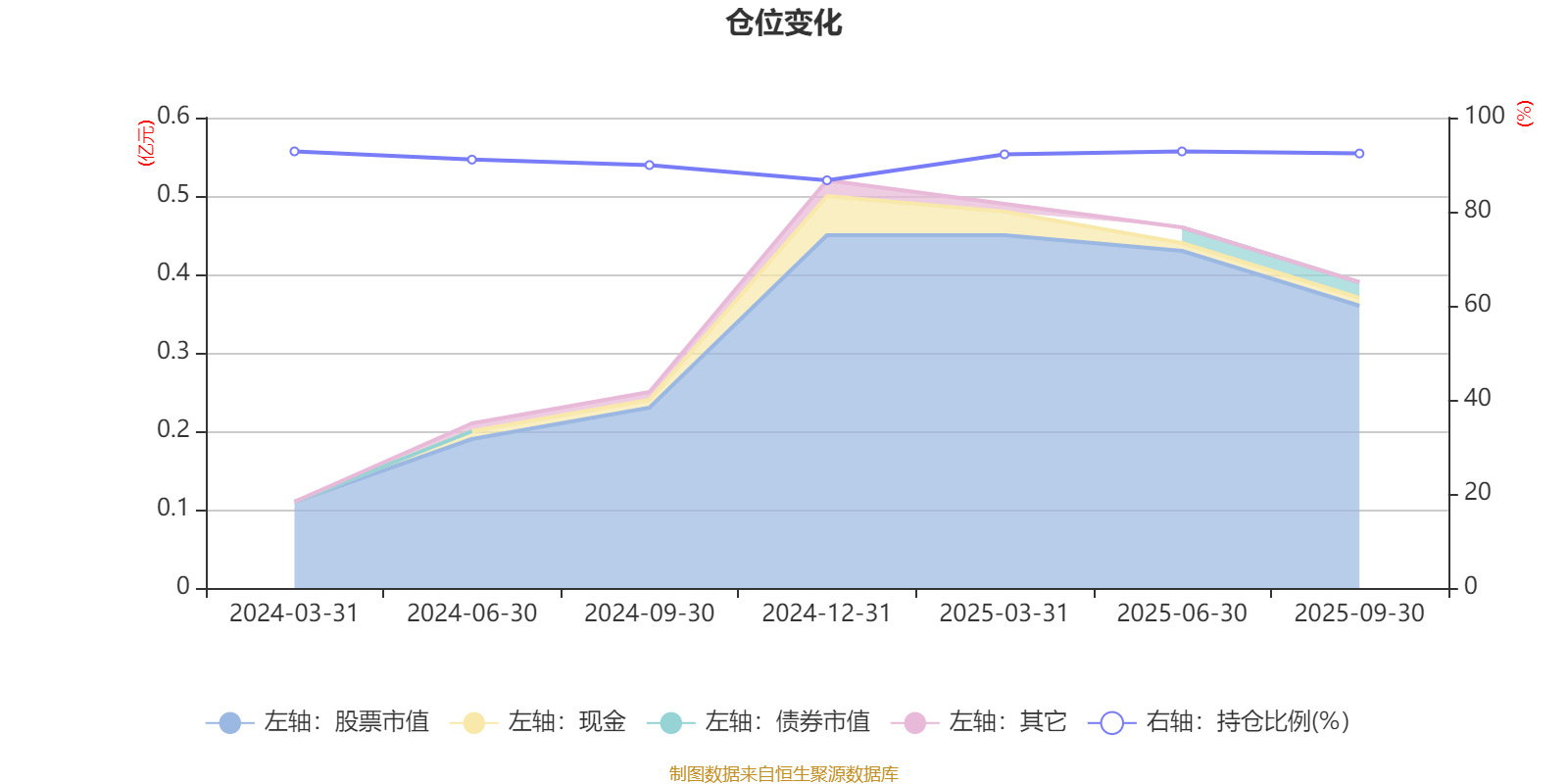 据定期报告数据统计,成立以来平均股票仓位为91.12%,同类平均为86.94%。2024年一季度末基金达到92.82%的最高仓位,2024年末最低,为86.67%。