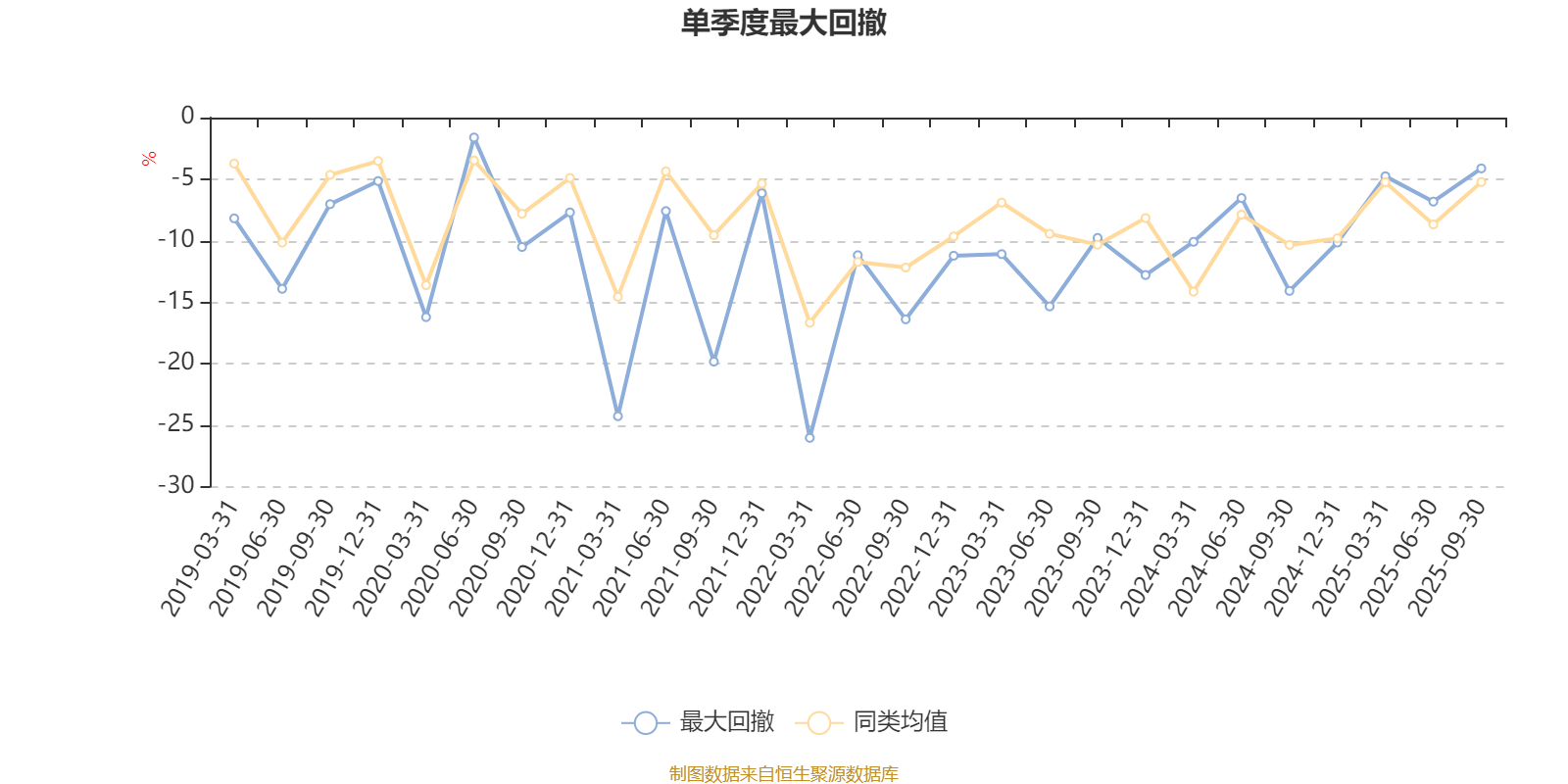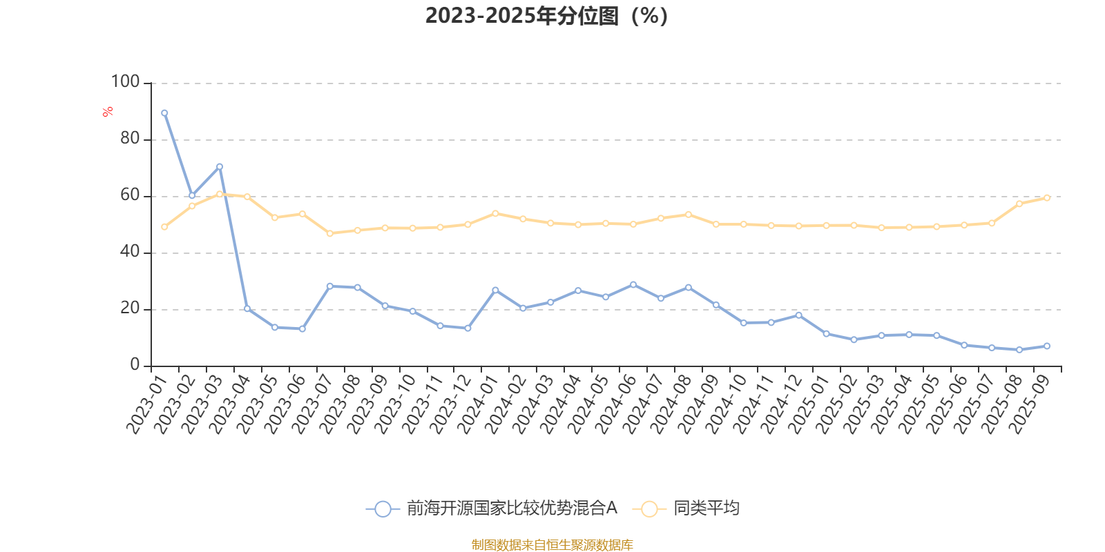 通过所选区间该基金净值增长率分位图,可以观察该基金与同类基金业绩比较情况。图为坐标原点到区间内某时点的净值增长率在同类基金中的分位数。