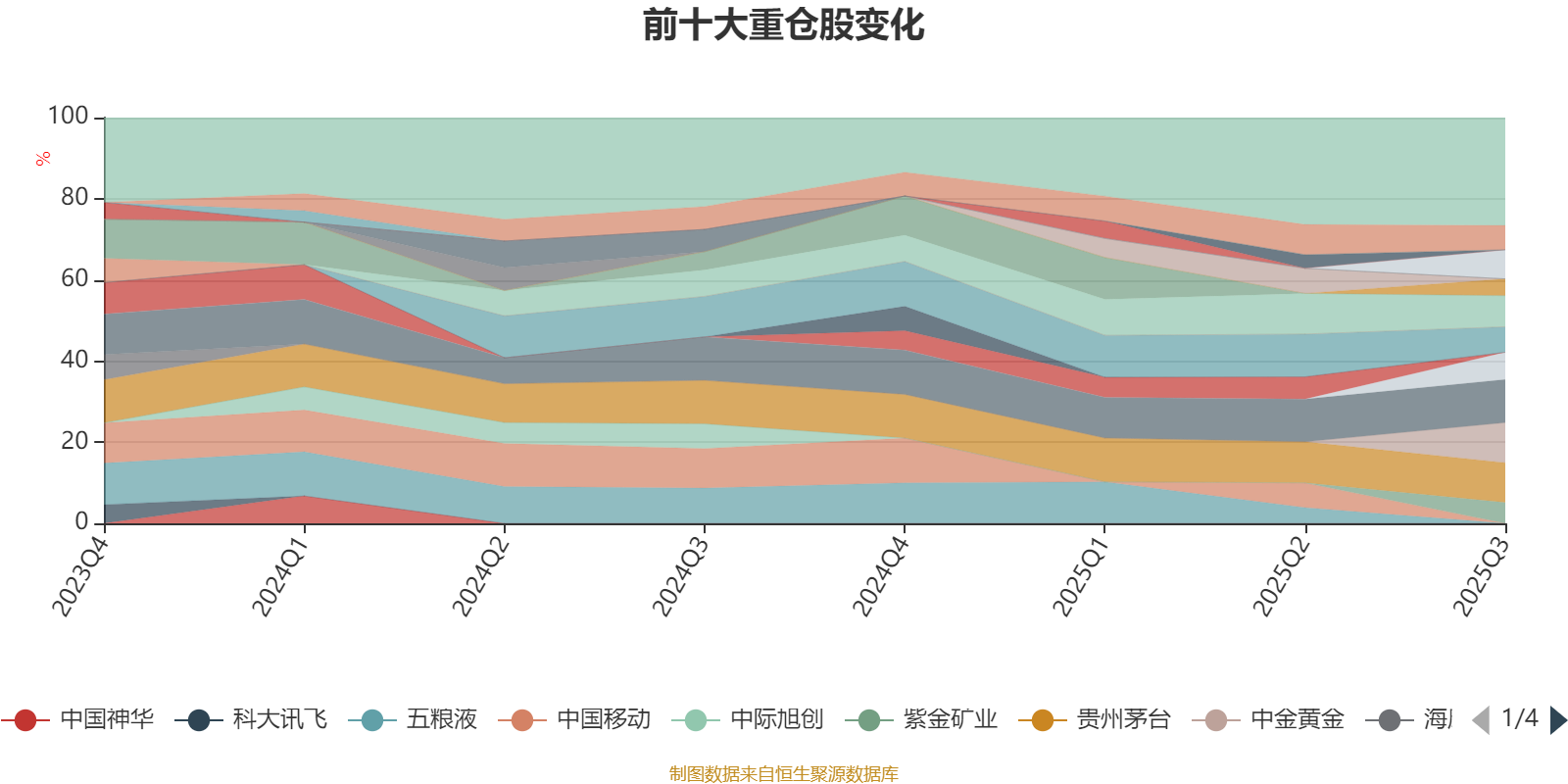 该基金持股集中度较高,近2年前十大重仓股集中度长期超过60%。截至2025年三季度末,基金十大重仓股分别是宁德时代、中金黄金、贵州茅台、湖南黄金、工业富联、芯原股份、中国海油、羚锐制药、紫金矿业、牧原股份。