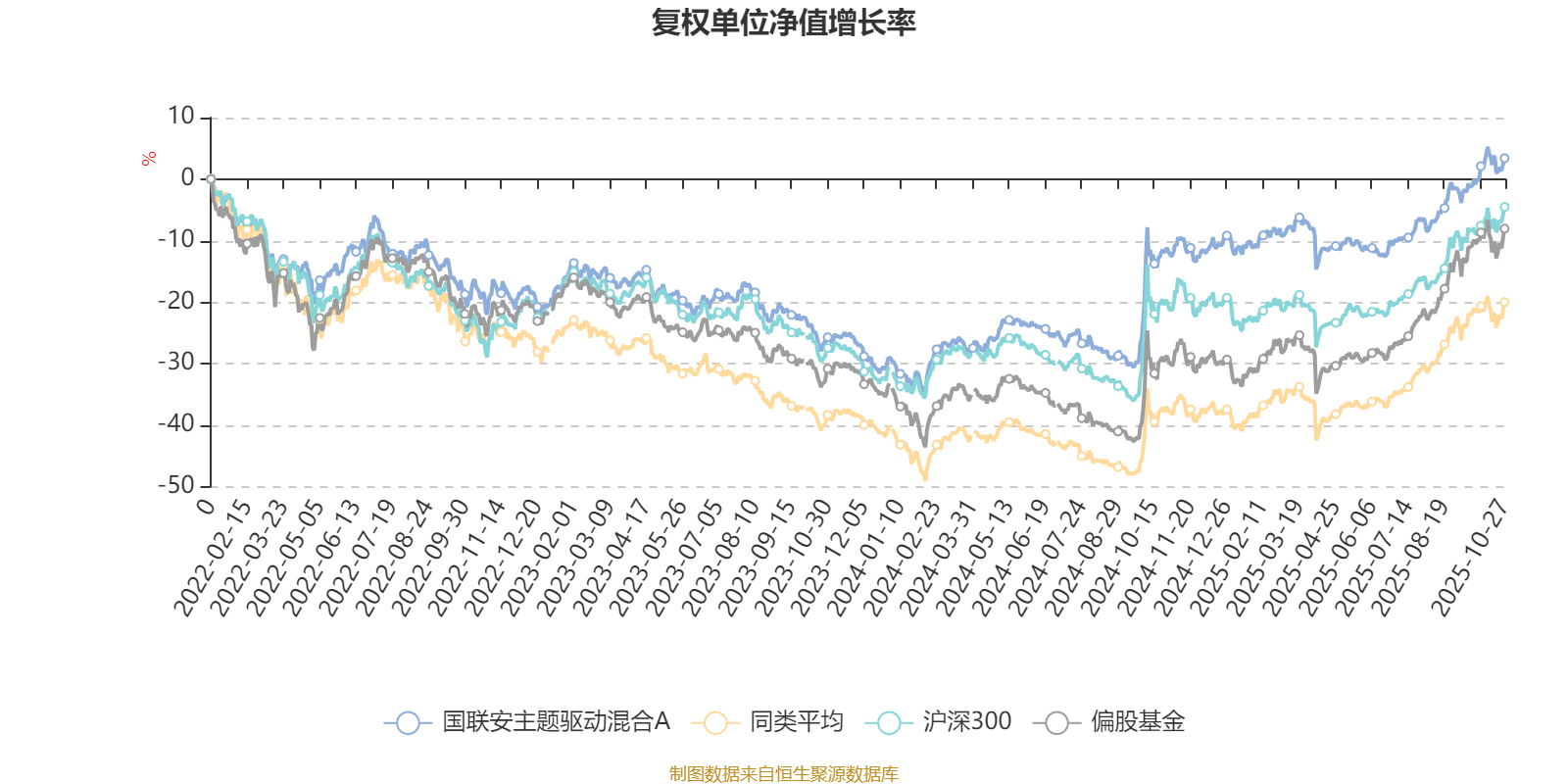 截至10月27日,国联安主题驱动混合A近三个月复权单位净值增长率为10.90%,位于同类可比基金436/689;近半年复权单位净值增长率为16.00%,位于同类可比基金553/688;近一年复权单位净值增长率为17.11%,位于同类可比基金473/653;近三年复权单位净值增长率为27.51%,位于同类可比基金95/364。