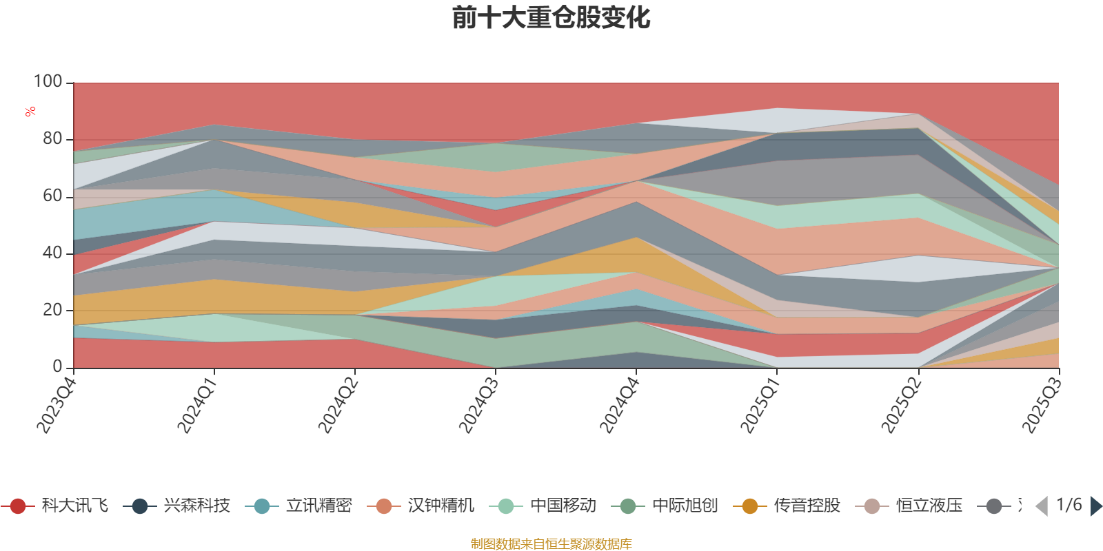 该基金持股集中度较高,近2年前十大重仓股集中度长期超过60%。截至2025年三季度末,基金十大重仓股分别是星宇股份、新泉股份、双林股份、长盈精密、中微公司、恒立液压、豪能股份、传音控股、汉钟精机、双环传动。