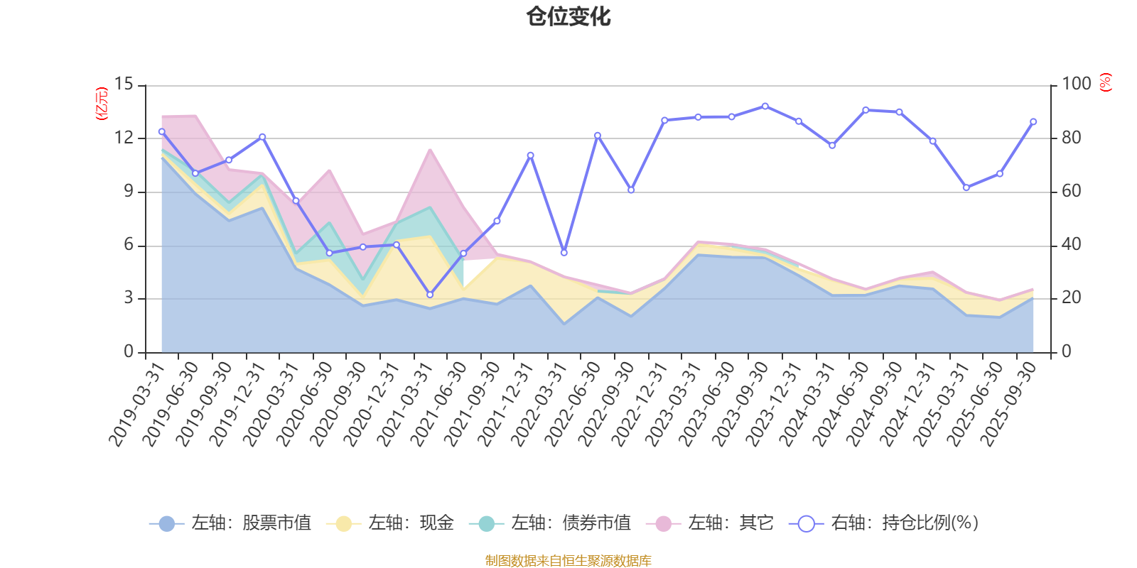 据定期报告数据统计,近三年平均股票仓位为82.84%,同类平均为72.35%。2023年三季度末基金达到92.16%的最高仓位,2021年一季度末最低,为21.62%。