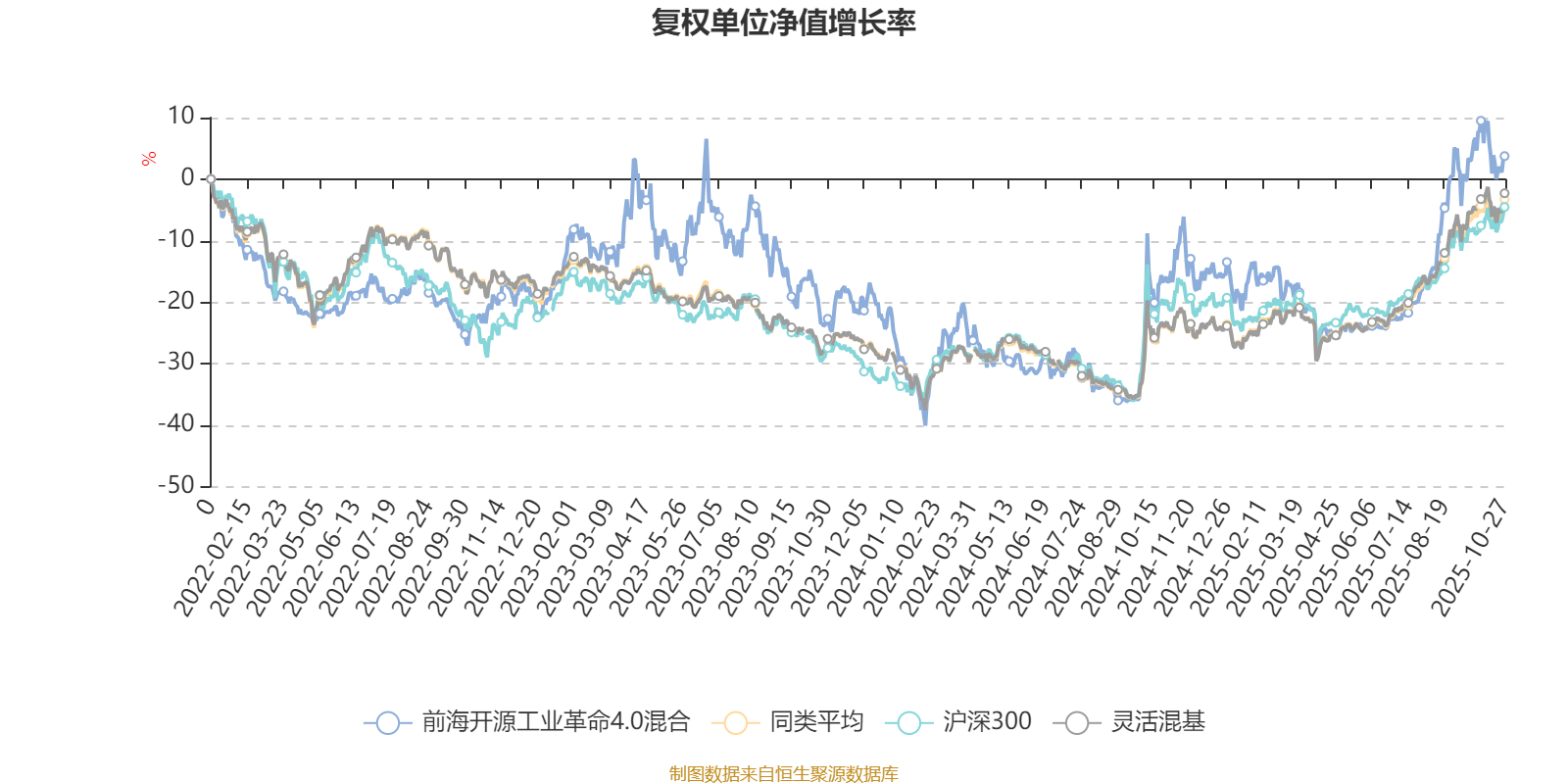 截至10月27日,前海开源工业革命4.0混合近三个月复权单位净值增长率为26.85%,位于同类可比基金235/1287;近半年复权单位净值增长率为38.96%,位于同类可比基金298/1287;近一年复权单位净值增长率为23.36%,位于同类可比基金611/1287;近三年复权单位净值增长率为32.86%,位于同类可比基金301/1286。