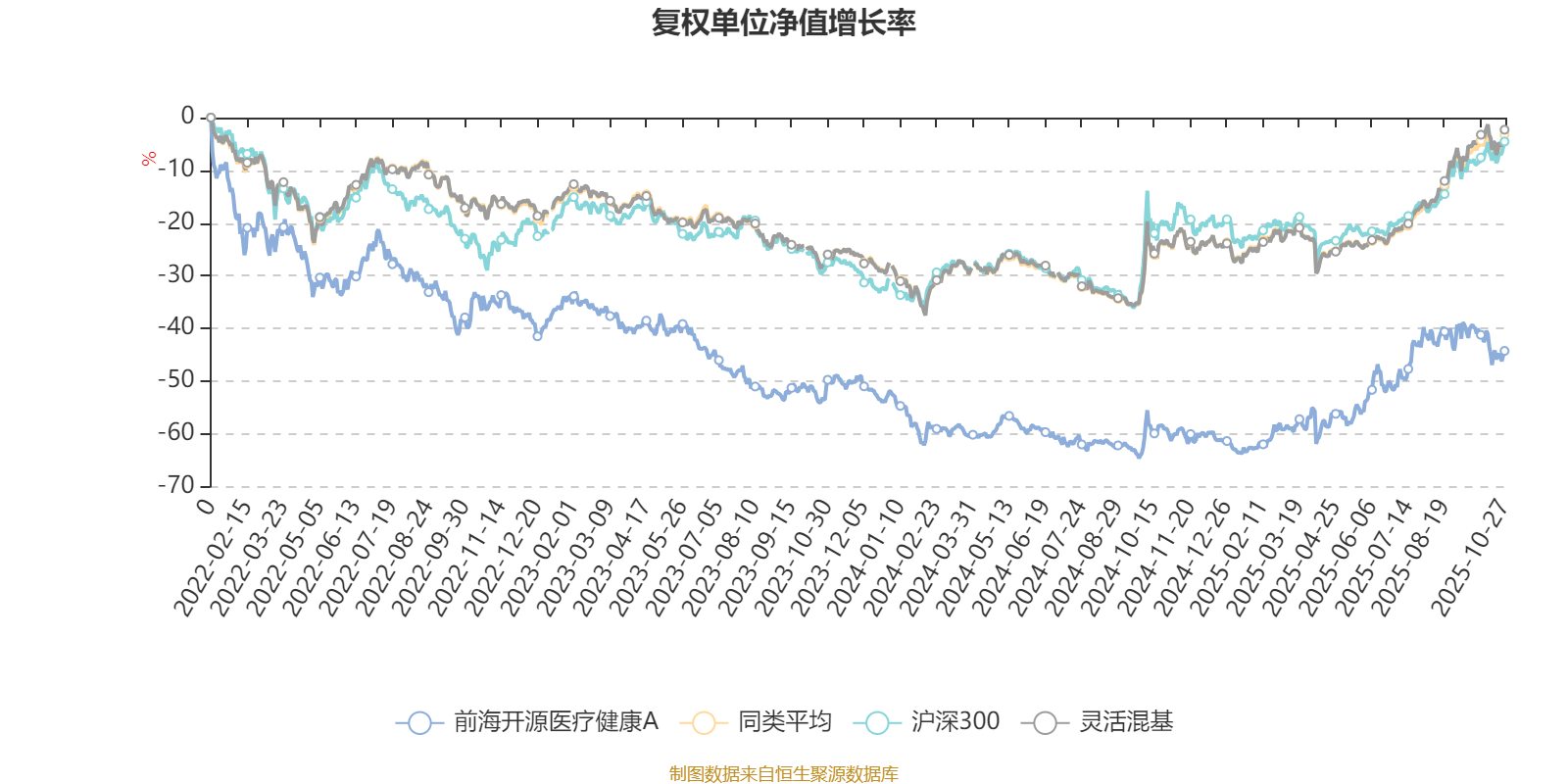 截至10月27日,前海开源医疗健康A近三个月复权单位净值增长率为-1.20%,位于同类可比基金1247/1287;近半年复权单位净值增长率为27.25%,位于同类可比基金559/1287;近一年复权单位净值增长率为35.90%,位于同类可比基金325/1287;近三年复权单位净值增长率为-14.09%,位于同类可比基金1179/1286。