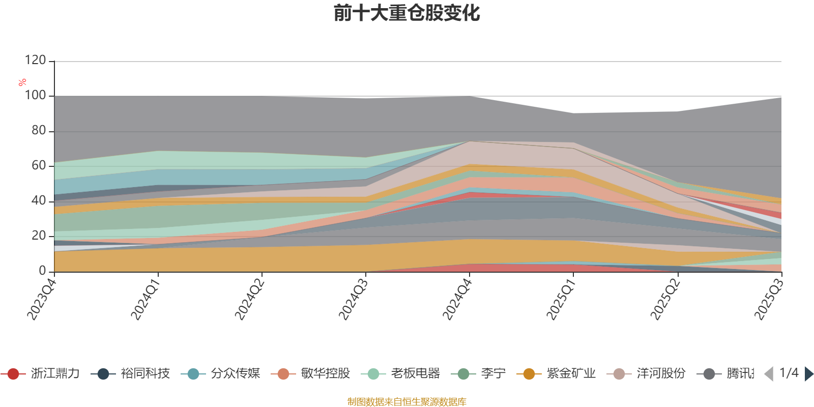 截至2025年三季度末,基金十大重仓股分别是腾讯控股、颐海国际、欧普照明、敏华控股、老板电器、天味食品、中炬高新、李宁、隆基绿能、美的集团。