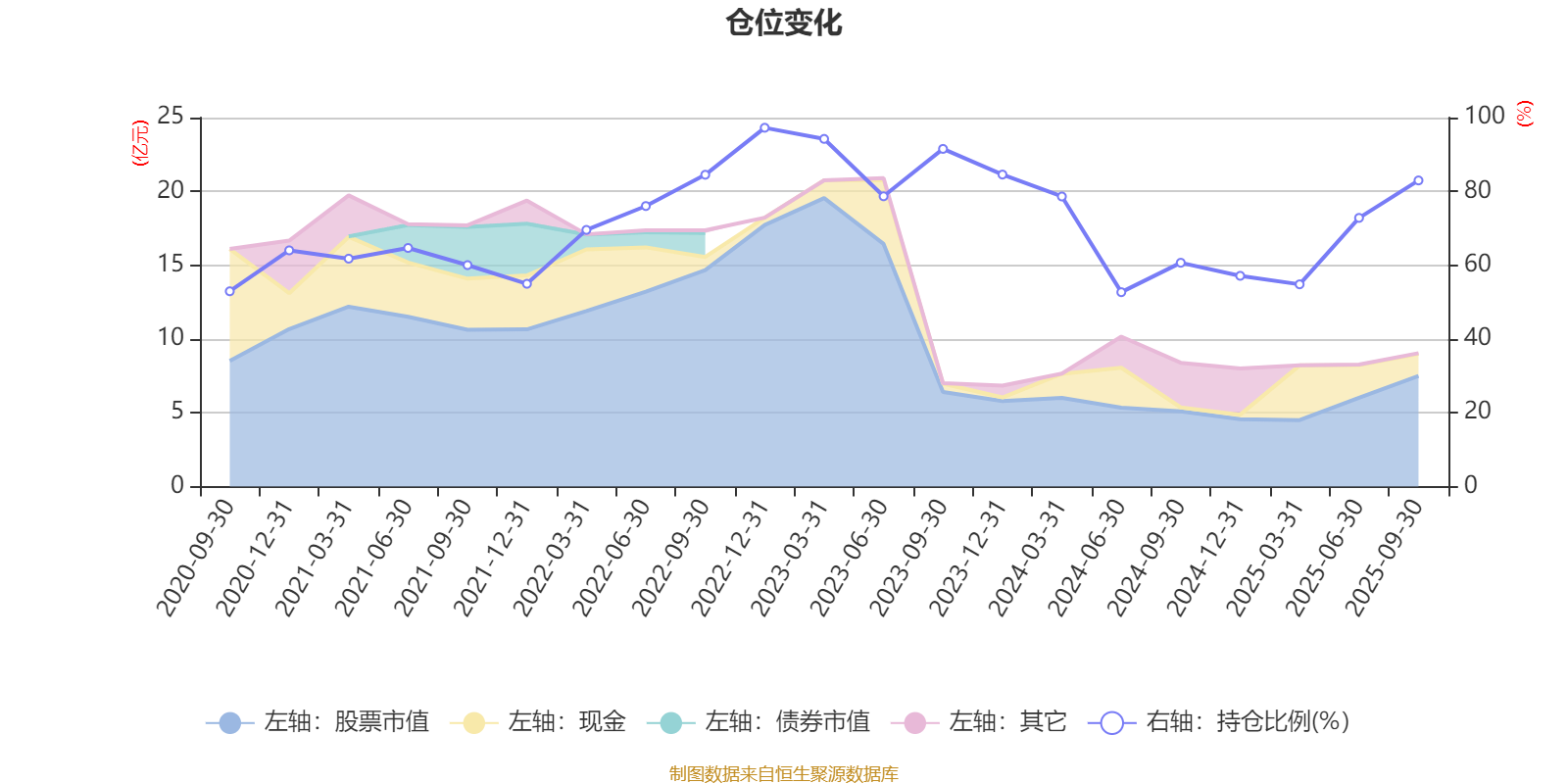 据定期报告数据统计,近三年平均股票仓位为75.49%,同类平均为72.35%。2022年末基金达到97.25%的最高仓位,2024年上半年末最低,为52.68%。