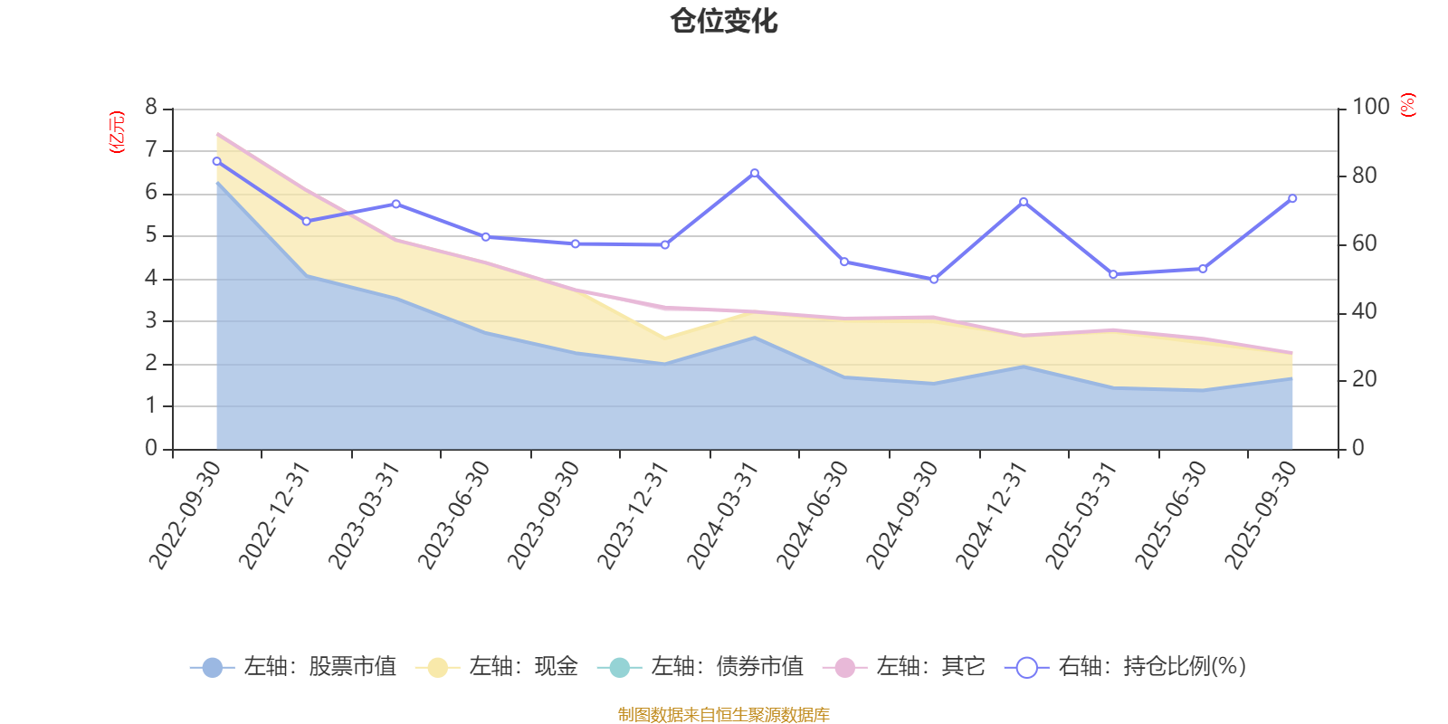 据定期报告数据统计,近三年平均股票仓位为63.2%,同类平均为72.35%。2022年三季度末基金达到84.56%的最高仓位,2024年三季度末最低,为49.89%。