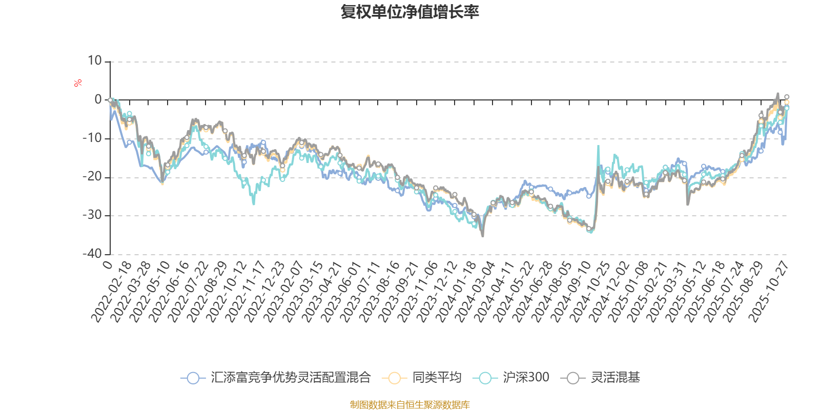 截至10月27日,汇添富竞争优势灵活配置混合近三个月复权单位净值增长率为16.34%,位于同类可比基金491/1287;近半年复权单位净值增长率为21.06%,位于同类可比基金731/1287;近一年复权单位净值增长率为20.71%,位于同类可比基金686/1287;近三年复权单位净值增长率为10.88%,位于同类可比基金747/1286。