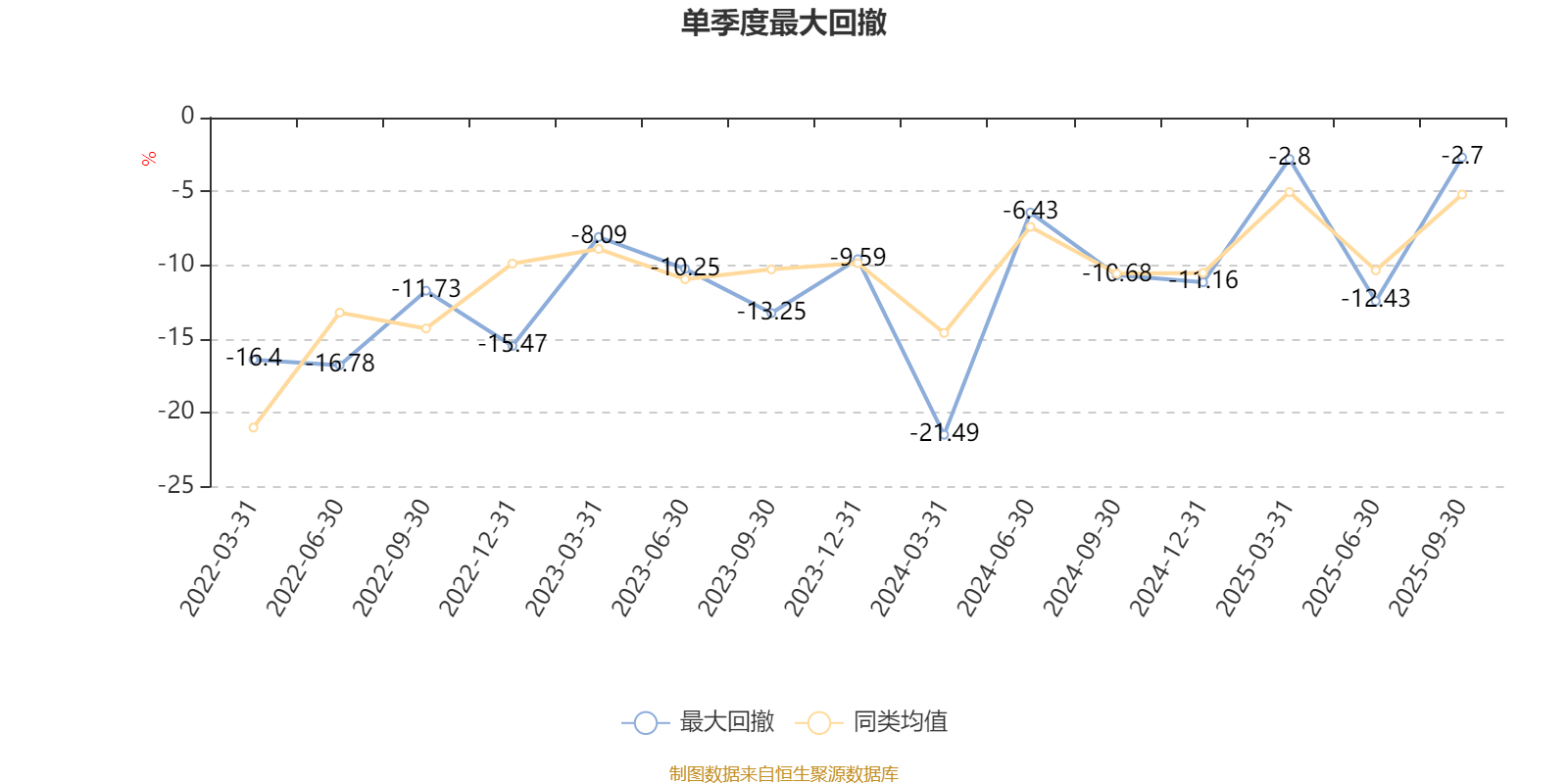 截至10月27日,基金近三年最大回撤为33.91%,同类可比基金排名61/124。单季度最大回撤出现在2024年一季度,为21.49%。