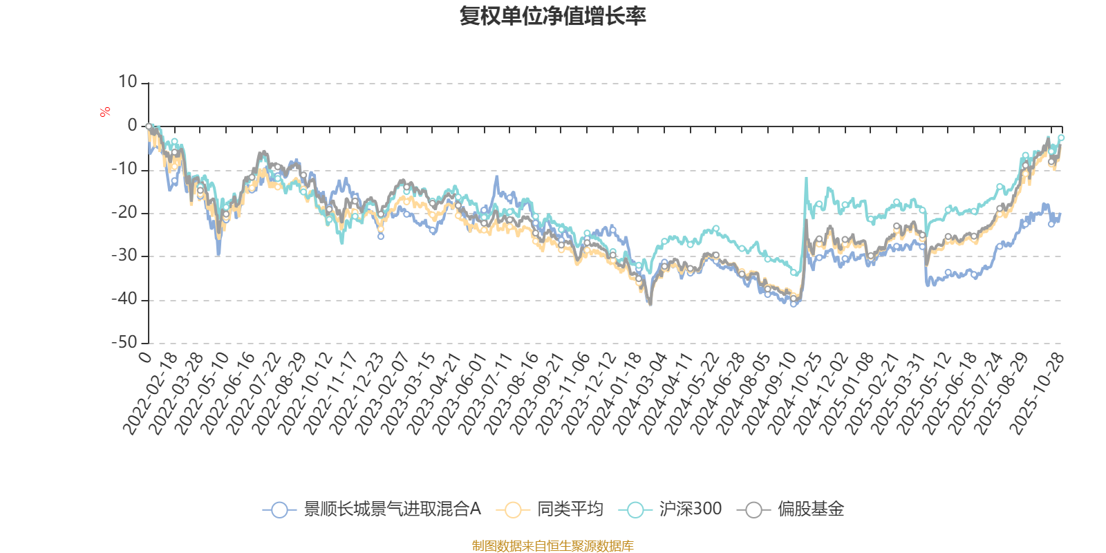 截至10月27日,景顺长城景气进取混合A近三个月复权单位净值增长率为11.39%,位于同类可比基金90/130;近半年复权单位净值增长率为23.20%,位于同类可比基金84/130;近一年复权单位净值增长率为14.86%,位于同类可比基金104/130;近三年复权单位净值增长率为-7.37%,位于同类可比基金114/124。