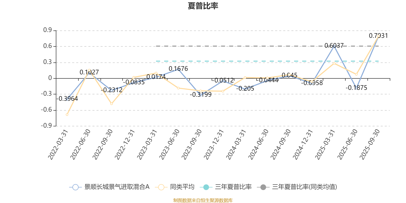 截至9月30日,基金近三年夏普比率为0.3216,位于同类可比基金102/125。
