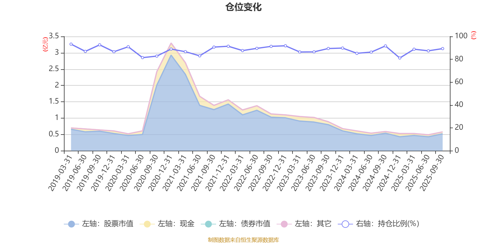 据定期报告数据统计,近三年平均股票仓位为87.85%,同类平均为83.73%。2019年一季度末基金达到93.29%的最高仓位,2024年末最低,为81.16%。