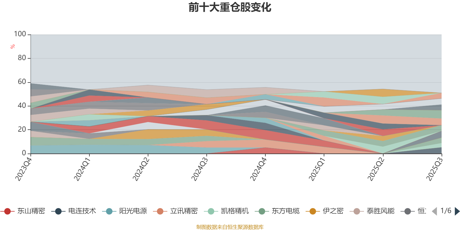 该基金持股集中度较高。截至2025年三季度末,基金十大重仓股分别是中芯国际、海光信息、中航沈飞、电连技术、三花智控、汇川技术、拓普集团、三一重工、东方电缆、凯格精机。