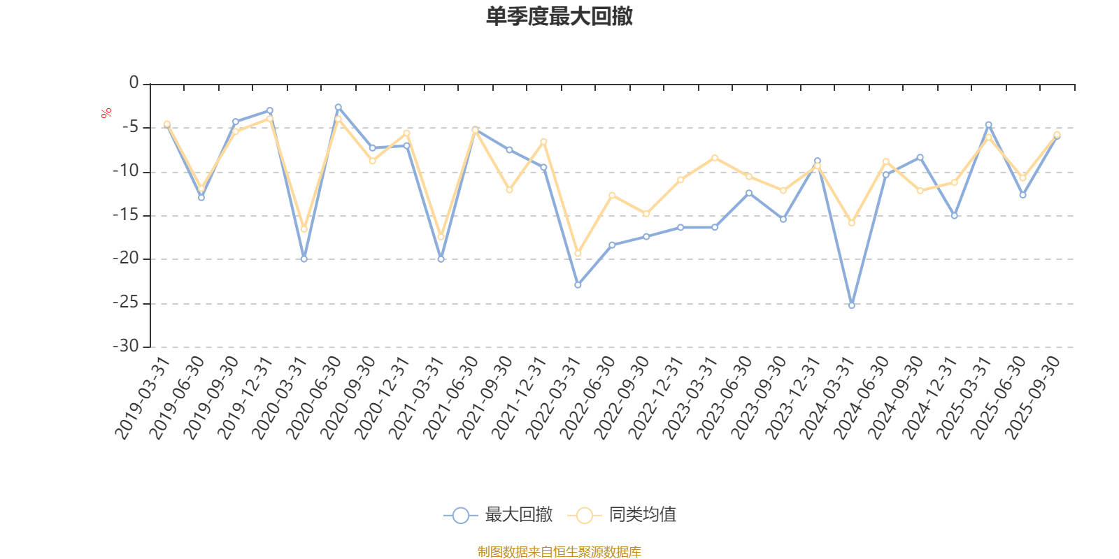 通过所选区间该基金净值增长率分位图,可以观察该基金与同类基金业绩比较情况。图为坐标原点到区间内某时点的净值增长率在同类基金中的分位数。