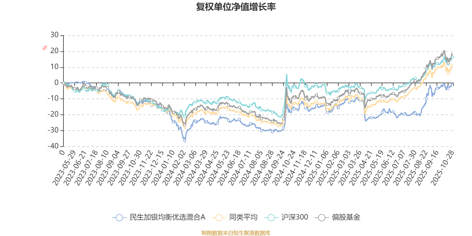 截至10月27日,民生加银均衡优选混合A近三个月复权单位净值增长率为22.46%,位于同类可比基金183/689;近半年复权单位净值增长率为27.23%,位于同类可比基金345/688;近一年复权单位净值增长率为19.04%,位于同类可比基金454/653。