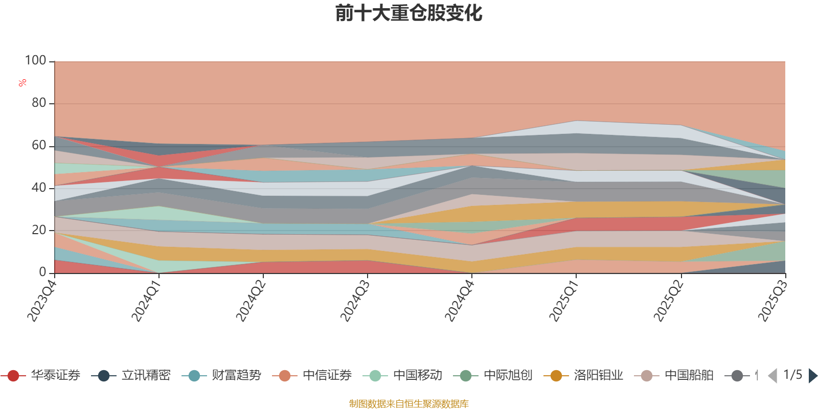 该基金持股集中度较高。截至2025年三季度末,基金十大重仓股分别是中际旭创、工业富联、隆盛科技、立讯精密、新易盛、恒立液压、德科立、浩欧博、景旺电子、晶合集成。