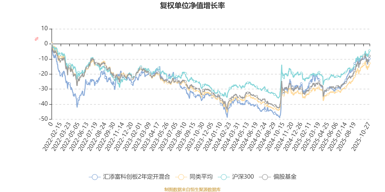 截至10月27日,汇添富科创板2年定开混合近三个月复权单位净值增长率为12.30%,位于同类可比基金118/185;近半年复权单位净值增长率为28.01%,位于同类可比基金104/185;近一年复权单位净值增长率为28.64%,位于同类可比基金85/181;近三年复权单位净值增长率为14.77%,位于同类可比基金101/175。