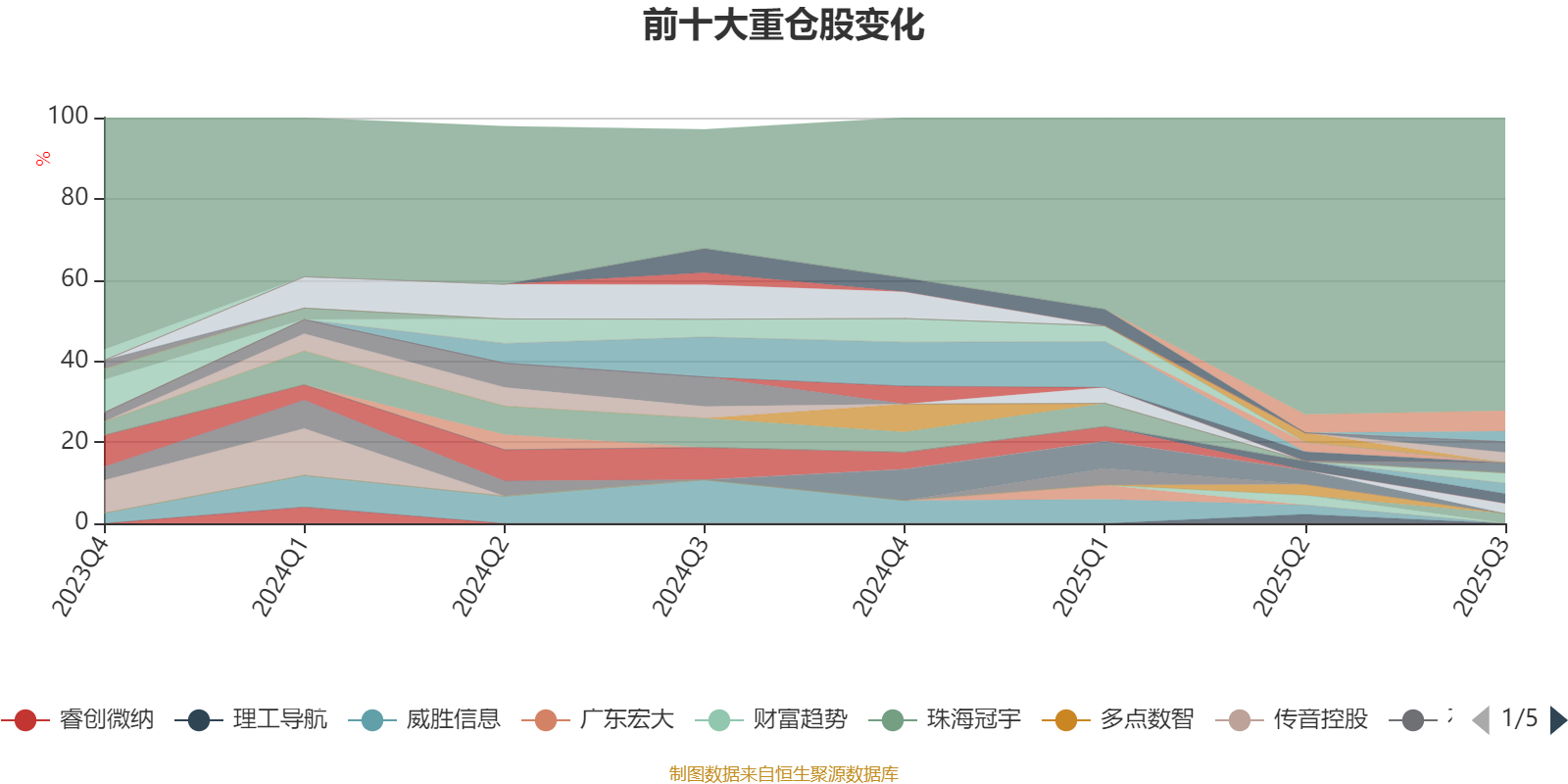 截至2025年三季度末,基金十大重仓股分别是仕佳光子、三生国健、芯联集成、杰华特、日联科技、航天南湖、灿勤科技、格科微、纳微科技、珠海冠宇。