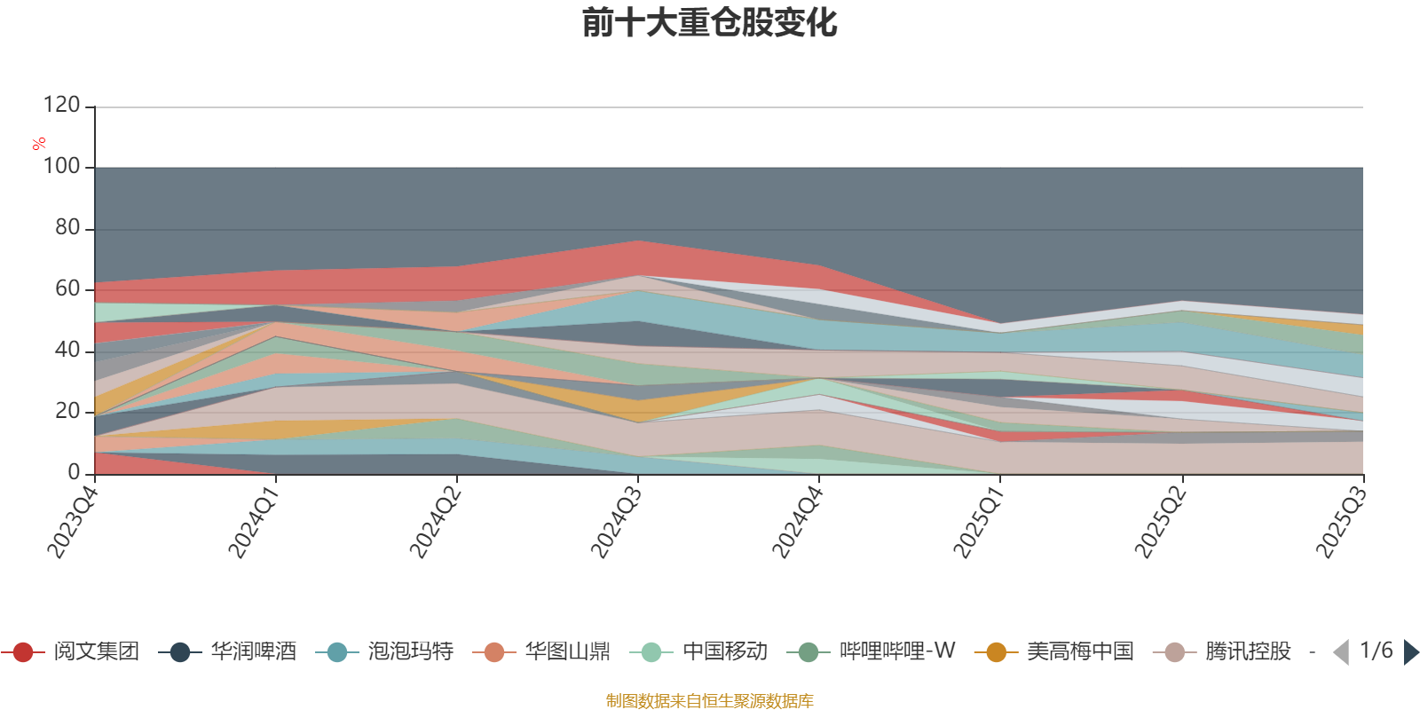 截至2025年三季度末,基金十大重仓股分别是腾讯控股、阿里巴巴-W、金界控股、中芯国际、小米集团-W、第四范式、华润置地、巨子生物、长和、高鑫零售。
