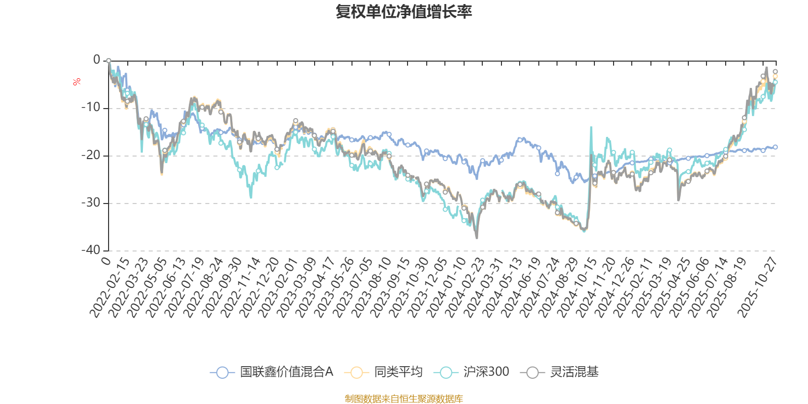 截至10月27日,国联鑫价值混合A近三个月复权单位净值增长率为1.06%,位于同类可比基金1173/1287;近半年复权单位净值增长率为2.98%,位于同类可比基金1211/1287;近一年复权单位净值增长率为7.69%,位于同类可比基金1038/1287;近三年复权单位净值增长率为-0.70%,位于同类可比基金1008/1286。