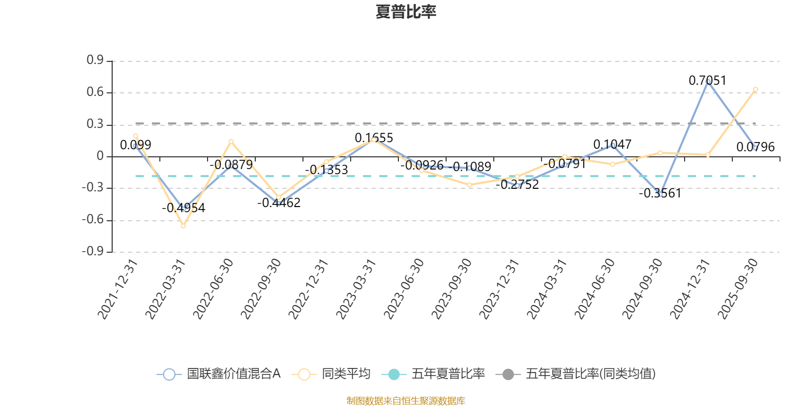 截至9月30日,基金近三年夏普比率为-0.1046,位于同类可比基金1221/1285。