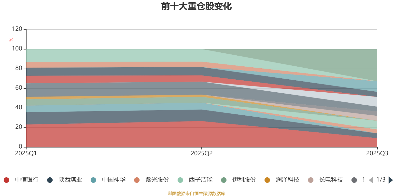 该基金持股集中度较高。截至2025年三季度末,基金十大重仓股分别是万凯新材、华友钴业、中信银行、西子洁能、紫金矿业、长电科技、陕西煤业、川投能源、锐科激光、紫光股份。